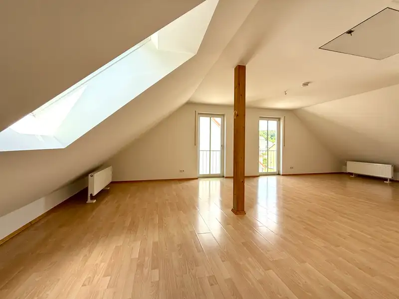 Another highlight of the property unfolds in the converted attic studio: the high, open room with rustic wooden beams and two floor-to-ceiling French windows with French balconies offers a very special ambience. Whether as a studio, playroom, retreat or creative space - this is your very own personal favorite place. The prepared cable routing even opens up the possibility of adding a small bathroom to this area and thus using it as an independent living unit.