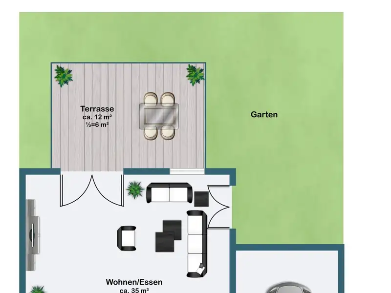 A real highlight is the spacious west-facing terrace, which is complemented by a stylish glazed roof. It provides reliable protection from the wind, sun and rain without restricting the view outside. This area thus becomes an extended living space - ideal for outdoor breakfasts, relaxed reading sessions or convivial barbecue evenings, regardless of the weather. The adjoining garden delights with decorative elements, secluded seating areas and plenty of space for children or green hobbies. The result is a very personal oasis of well-being - in the middle of the city and yet wonderfully quiet.
