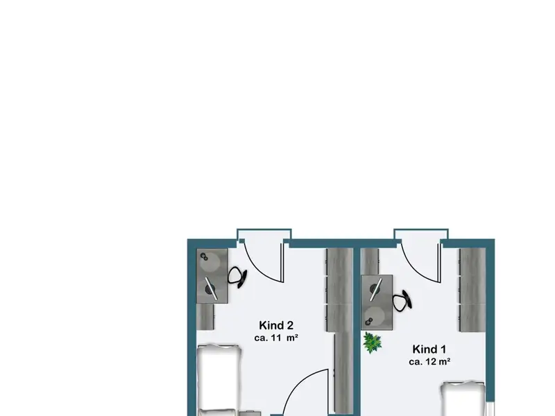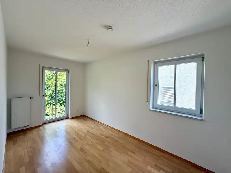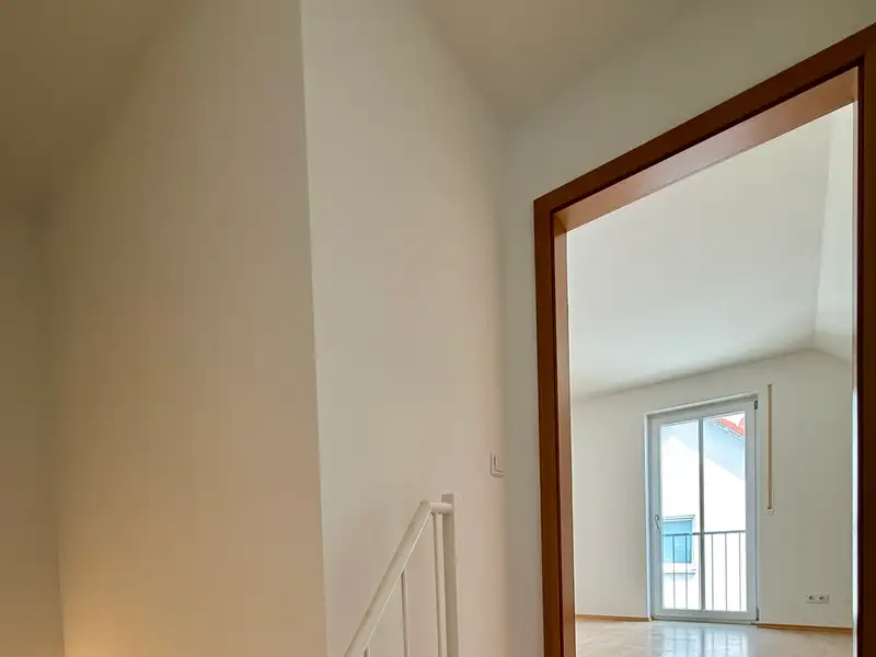 An elegant tiled staircase with a white metal handrail leads to the upper floor, which impresses with its bright rooms and well thought-out floor plan. The modern daylight bathroom is equipped to a high standard with a shower, bathtub and washbasin - a place to take a deep breath and relax. The bedroom offers enough space for a large bed and other pieces of furniture, while two further rooms with floor-to-ceiling windows and French balconies create a pleasantly open feel. Whether as a children's room, guest room or home office - there is space here for every phase of life.