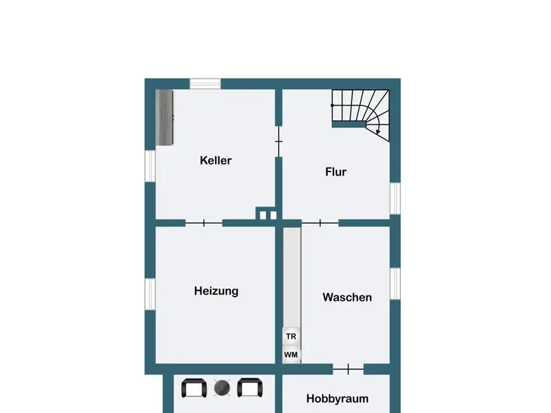In the basement, you will find well thought-out and practical solutions. The spacious laundry room is equipped with a platform for washing machine and dryer - ideal for everyday needs. There is also a versatile hobby room and an additional room that is ideal as a home office, fitness room or for hobbies.