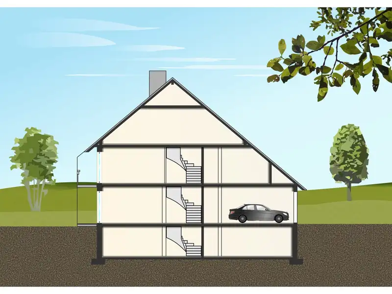 With a living space of currently approx. 125 m² - optionally extended to approx. 150 m² with a complete attic conversion - a fully usable basement and a single garage with a parking space in front, it opens up a wide range of possible uses: whether for families, couples or creative designers.