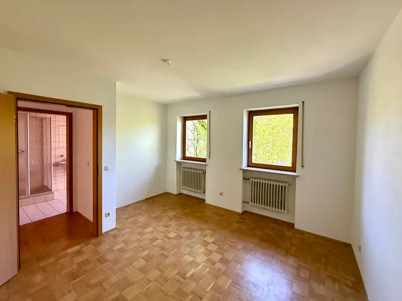 The potential master bedroom impresses with its spaciousness - a comfortable double bed, a large closet and perhaps even a small reading corner can be easily accommodated here. From the balcony, you can enjoy a wonderful view over the gardens and the neighborhood - a place for relaxing in the evening or enjoying your first coffee in the morning.
