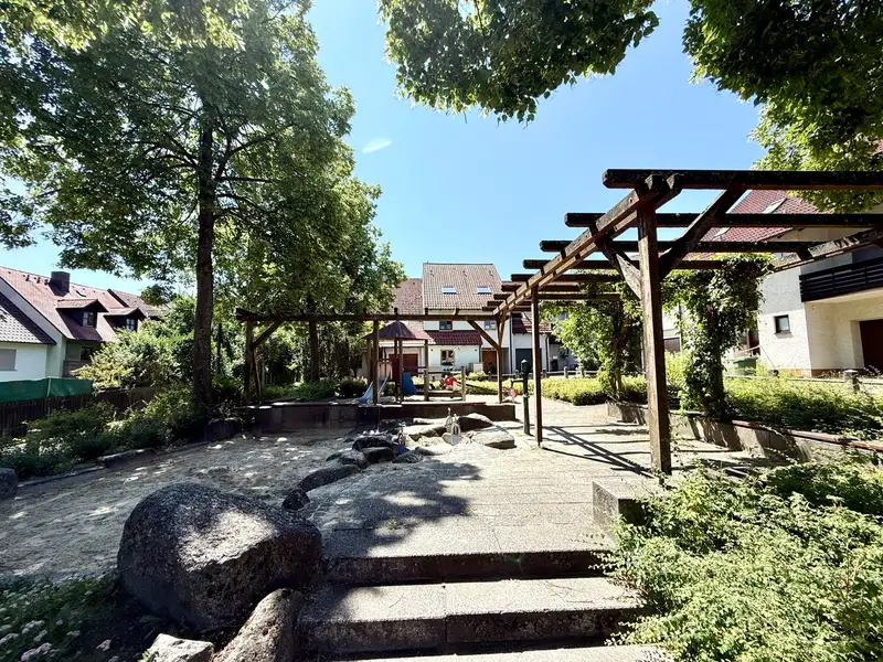 This charming end-terrace house is located in the popular Königswiesen Süd district of Regensburg, in a traffic-calmed residential street with direct access to playgrounds, green spaces and walking paths. The house was built in 1984 in solid construction and is now waiting to be filled with life by new owners.