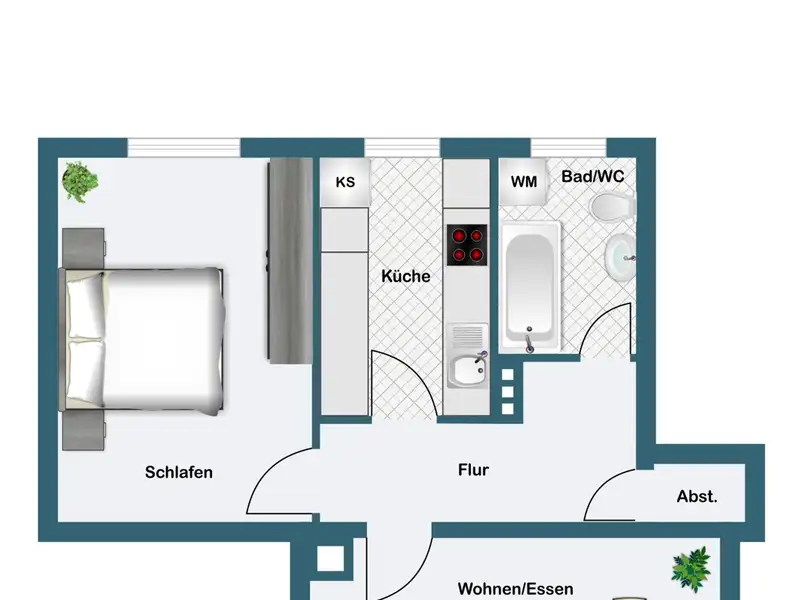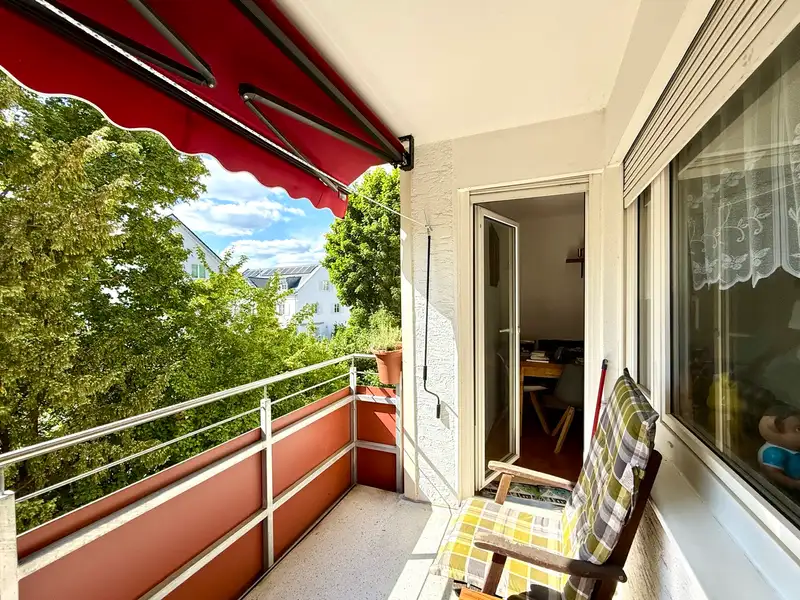 Direct access to the sunny west-facing balcony makes this room the heart of the apartment: flooded with light, spacious, with a view of the greenery and protected by a high-quality awning - a real highlight for anyone who likes to relax outside.