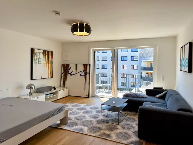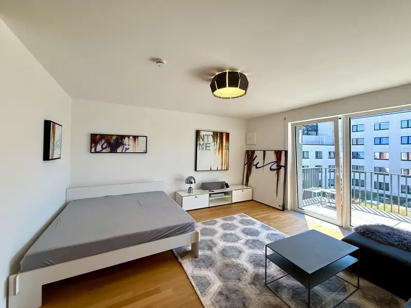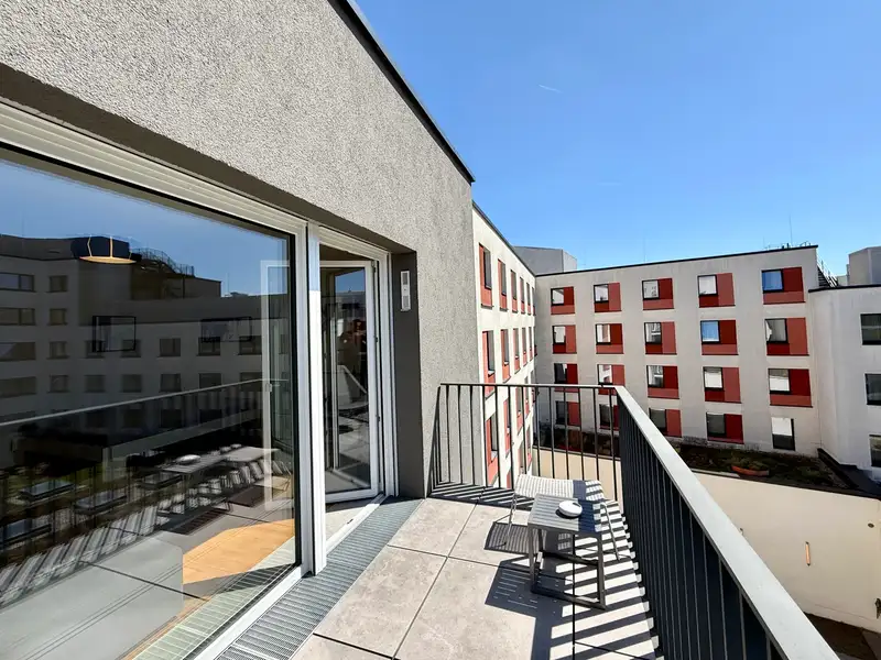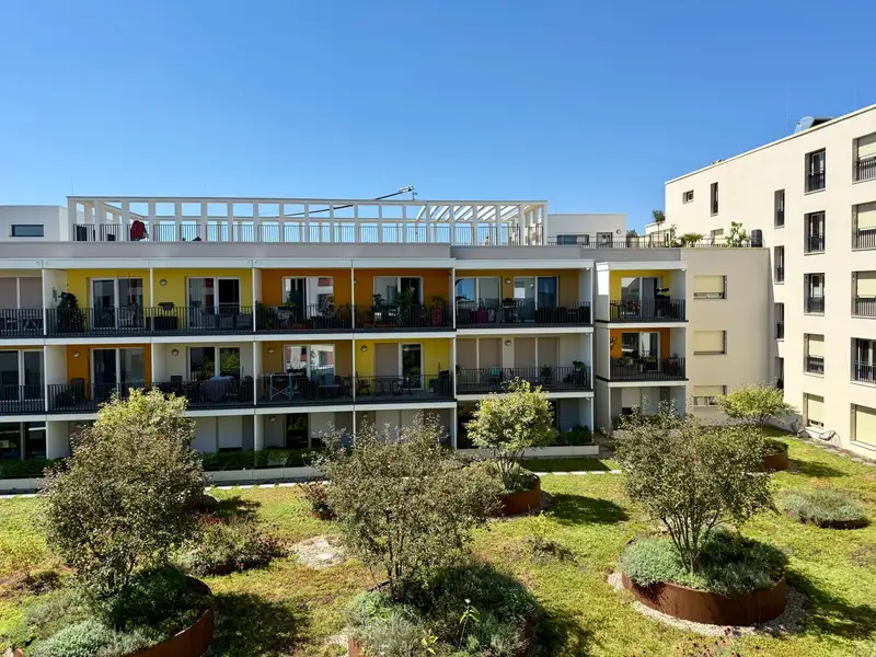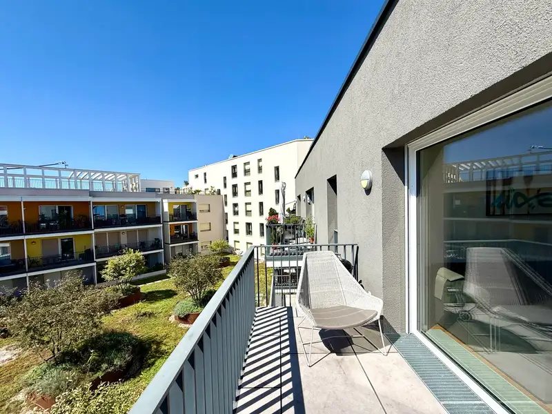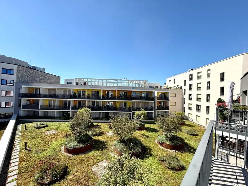 - Sunny south-facing balcony with garden view