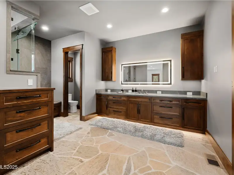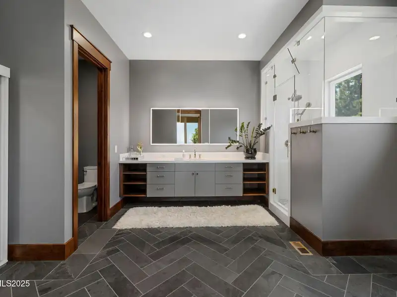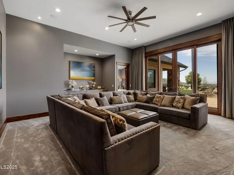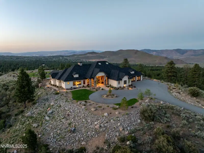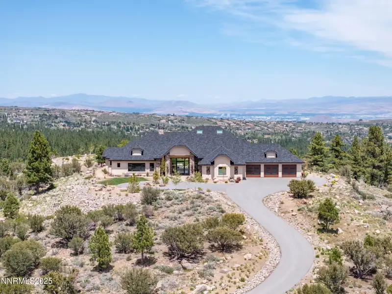 This is what it looks like at the top. Own the CROWN of Reno at 29 Bennington Court—a powerful property, built for bold living on one of the region's largest mountain top lots featuring 360-degree views of Mt. Rose, the city, and the forest. This custom, 4,831 sq ft single-level estate combines privacy, exclusivity, and luxury with three spacious suites, heated quartzite counters on the Kitchen Island, High end Thermador appliances, and Waterstone fixtures. Outside, the terrace features a massive yard, spa, gas firepit, and wood-burning hearth. Rising from St. James's Village, 29 Bennington Court commands the most powerful vantage in Reno. Spanning 6.33 acres across two contiguous parcels, this estate offers uninterrupted 360-degree views of Mt. Rose, downtown Reno, and the Sierra forest canopy. This single-level estate defines the top, geographically, architecturally, and experientially. This is not simply a home with views. It is the highest-positioned property in one of the region's most exclusive gated community—a singular alignment of land, layout, and presence. No other estate combines this scale, privacy, and presence. It does not compete. It leads. The structure is grounded in proportion and permanence. Wide hallways, soaring soffit ceilings, and generous transitions create a deliberate rhythm throughout the home. Material selections emphasize integrity over ornamentation: hardwood in primary living areas, plush carpet in private quarters, and marble thresholds where spaces shift. Skylights are positioned to trace the sun's arc, filling the interiors with natural light throughout the day. Each of the three en-suite bedrooms serves as a fully self-contained retreat—private, quiet, and complete. The primary suite features a steam shower, a deep soaking tub, radiant in-floor heating, and a meticulously outfitted dressing room with mirrored cabinetry, tailored lighting, and integrated storage. A discreet pass-through leads to the oversized laundry room, outfitted with dual washers and dryers, concealed hampers, and extensive cabinetry—designed for lasting function. Designed to balance performance and intention, the kitchen centers the home as a working space and a gathering area. A complete Thermador suite includes a six-burner range with griddle, dual convection ovens, commercial-grade ventilation, and integrated refrigeration. Heated quartzite countertops provide tactile comfort and thermal consistency. Cabinetry is full-depth and soft-close, with Waterstone fixtures chosen for their weight, reliability, and enduring finish. The walk-in pantry includes open shelving, a pebble ice maker, and grocery access to a three-car garage. Exterior living areas are designed for use and longevity. The terrace unfolds to a large patio with outdoor electric heating and a wood burning hearth, a recessed Bullfrog spa, a gas fire pit, and a massive yard. Hardscaping materials, including poured concrete and boulders sourced directly from the site, frame the home within its landscape rather than separate it. The office is not a token room; it is a space for strategy, output, and reflection. Equipped with built-in storage, a seamless flow into the great room, and forest-facing windows, it is designed to support sustained thought and forward movement. Whether the work is creative, operational, or directive, this is a room that holds its purpose. 33 Bennington Court, an adjacent undeveloped parcel, is included in the sale. Build a second structure, hold the land in reserve, or preserve the buffer indefinitely. This second lot represents opportunity and leverage in a gated setting where acquiring additional acreage is nearly impossible. Opportunities like this are never replicated. They're seized. No other property in Reno offers this elevation, this acreage, or this architectural clarity. 29 Bennington Court holds its position without effort—dominant in placement, precise in design, and unmatched in scope. It does not compete. It stands alone.
