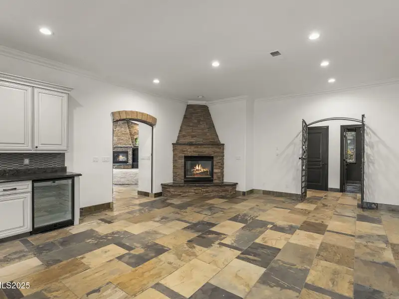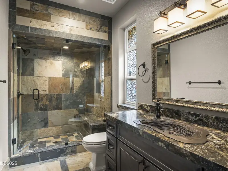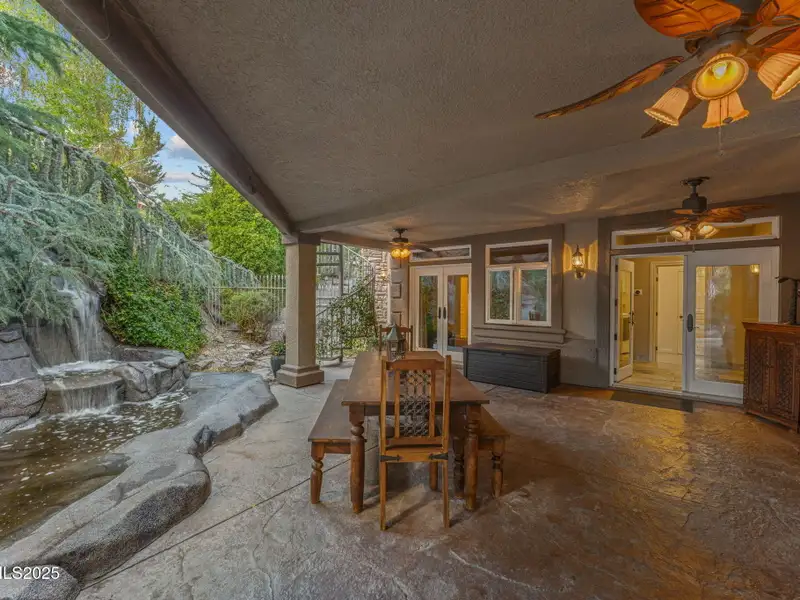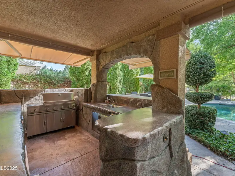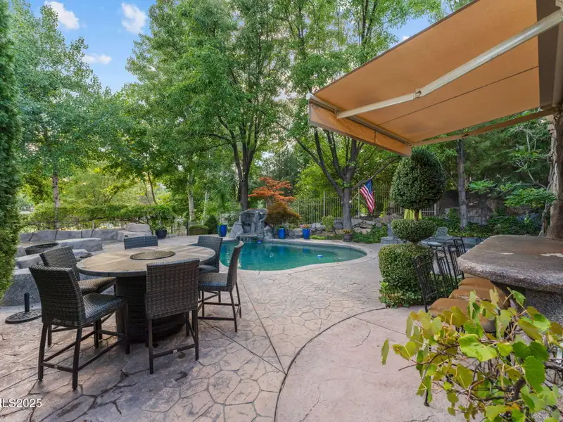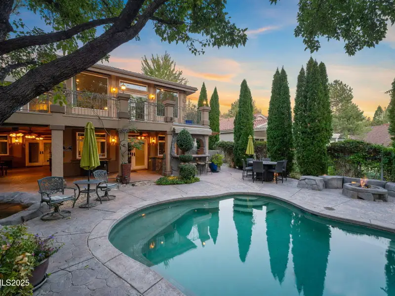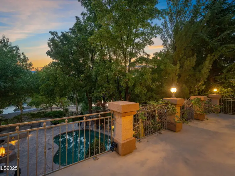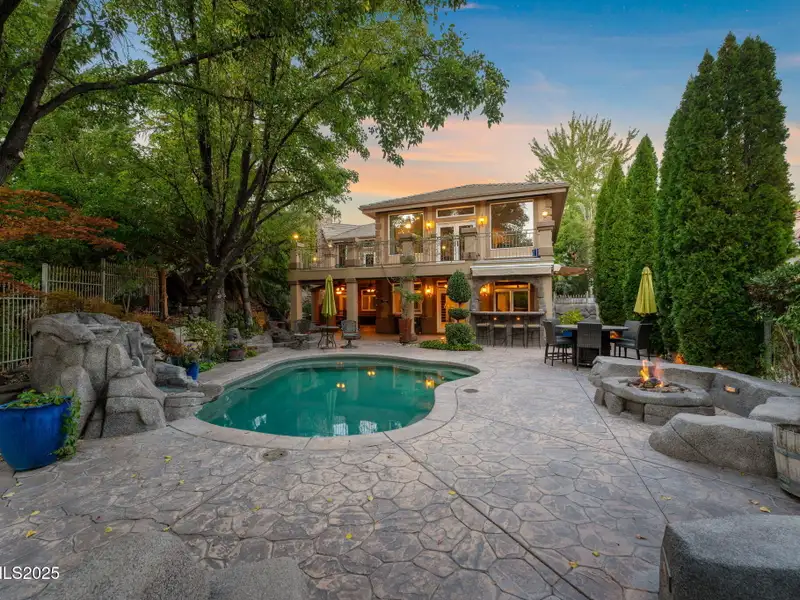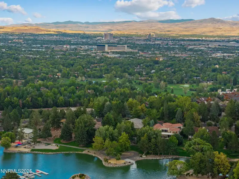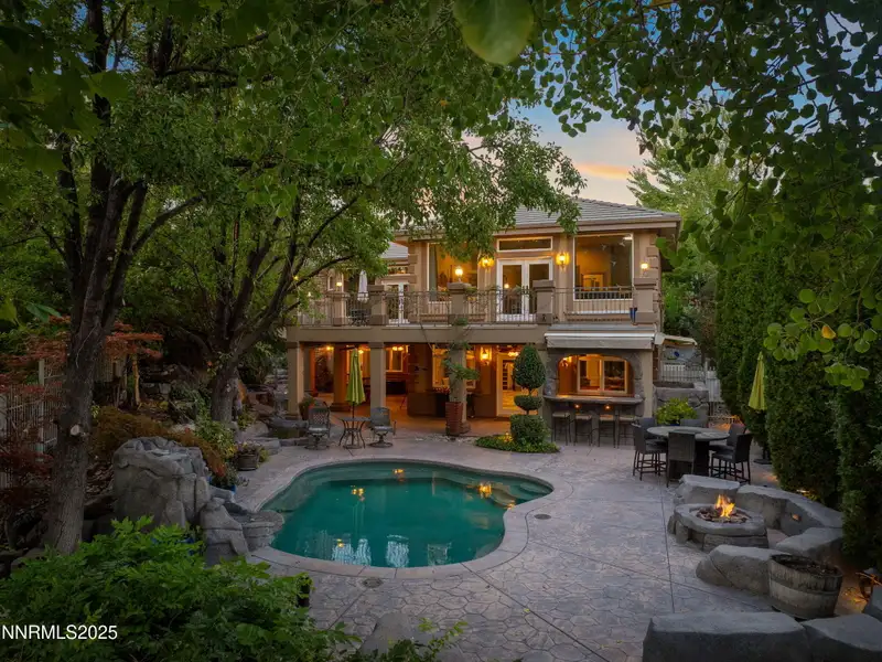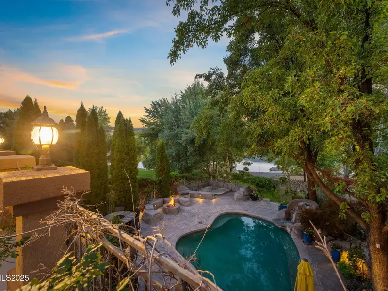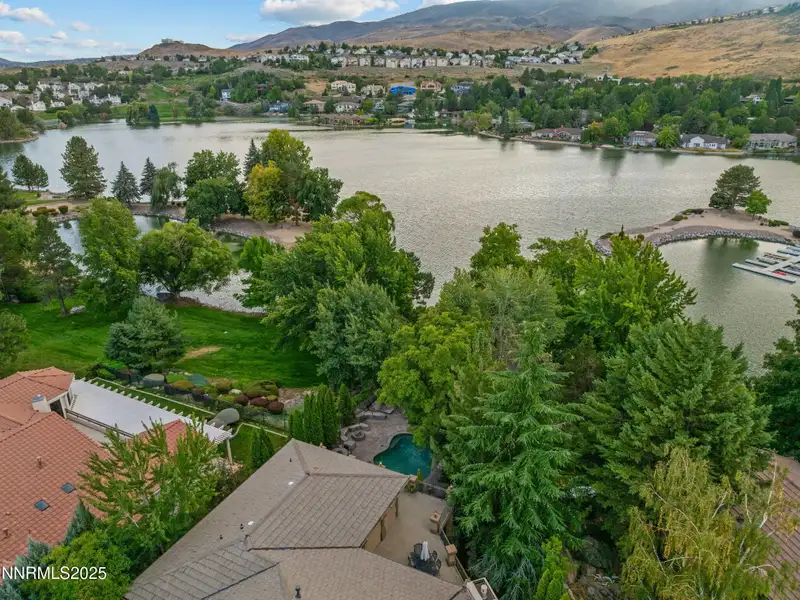 Experience unmatched luxury and tranquility in this spectacular 5,470 sq. ft. lakefront estate, perfectly positioned on the shores of Lake Stanley. Located within one of the area's most coveted gated communities, this home offers breathtaking mountain and water views, and an exquisite blend of elegance and modern comfort. The grounds are truly extraordinary. Surrounded by mature landscaping, a boat dock, a tennis court, and peaceful ponds and creeks that create an unmatched setting rarely found. The backyard is an oasis designed for both relaxation and first-class entertaining. Enjoy an inground pool with a cascading waterfall, a fully equipped outdoor kitchen that's complete with BBQ, refrigerator, wine cabinet, ice maker, dishwasher, and instant hot water. There are multiple inviting spaces for gatherings near the tranquil pond, soothing waterfall, fire pit, and lush foliage that provides the ultimate retreat. The home sits adjacent to the community common area and directly faces the lake, enhancing both the natural beauty and the sense of openness. This estate has been thoughtfully and extensively remodeled with premium materials and superior craftsmanship throughout. The home features 4 spacious bedrooms, each with its own ensuite bath, plus an elegant half bath for guests. The primary suite is a sanctuary, complete with a cozy fireplace, dual closets, a walk-in shower, and a jetted tub for spa-like relaxation. Designed for both everyday living and gourmet cooking, the kitchen showcases custom copper sinks, a lighted island with prep sink, built-in oven, microwave, warming drawer, and a professional 6-burner gas range with two additional ovens. The adjacent family room features a gas fireplace and custom iron gates that offer a tasteful way to maintain pet-friendly zones. The grand living room features vaulted ceilings, another gas fireplace, and sweeping views of the mountains which offers an unforgettable setting for entertaining or unwinding. A separate formal dining room, enhanced with stunning stone flooring, adds elegance and warmth. The finished lower level provides additional living and entertaining space, including a large gathering area, two bedrooms, and a laundry room, making it ideal for guests, multigenerational living, or a private retreat. With seven French doors opening to multiple balconies and covered patios, the design seamlessly blends indoor comfort with outdoor beauty, allowing you to take full advantage of the incredible views and serene surroundings. This exceptional estate offers unparalleled beauty and luxury. Let this be your private sanctuary in a setting that truly stands apart!
