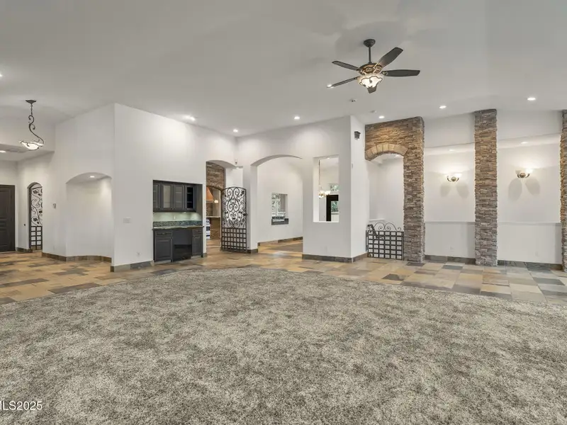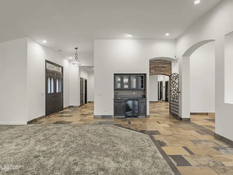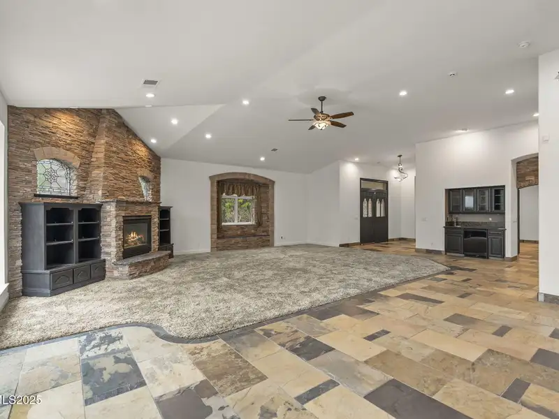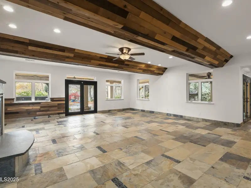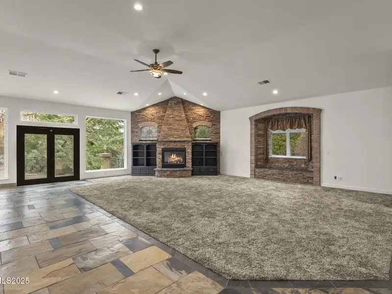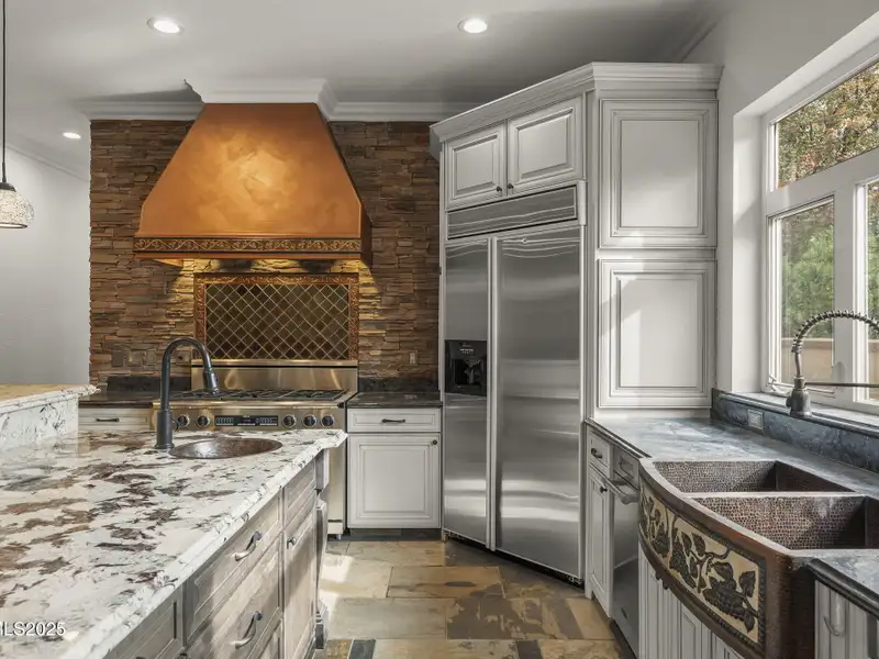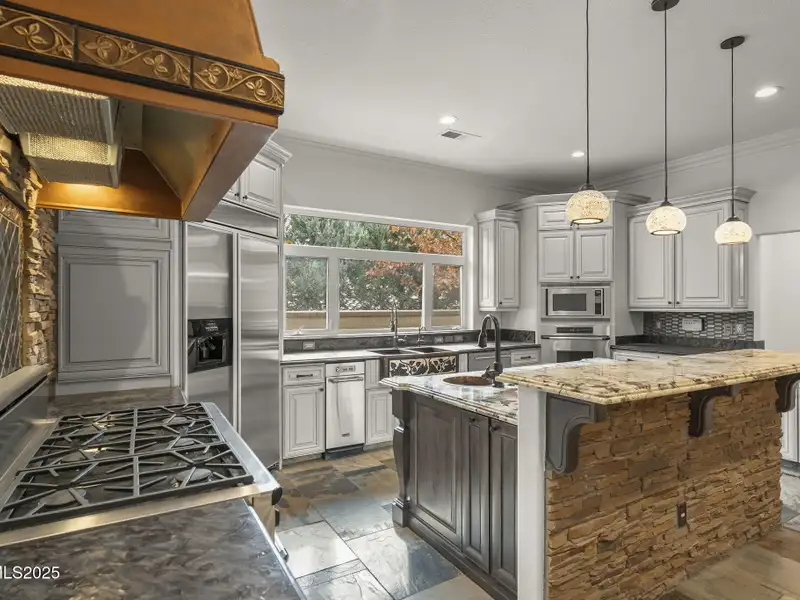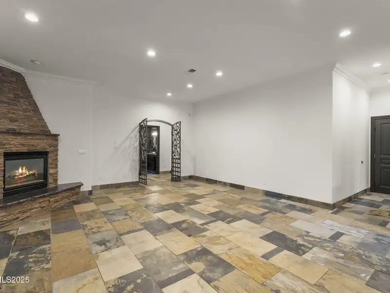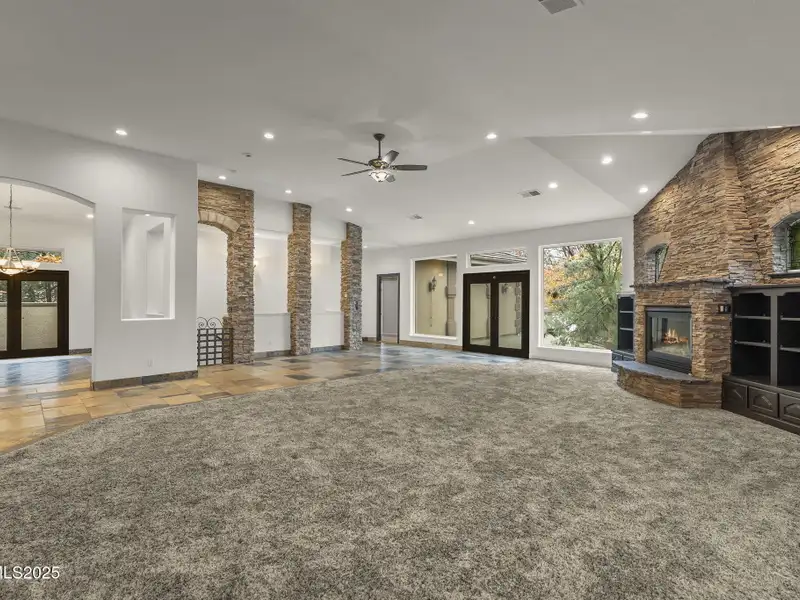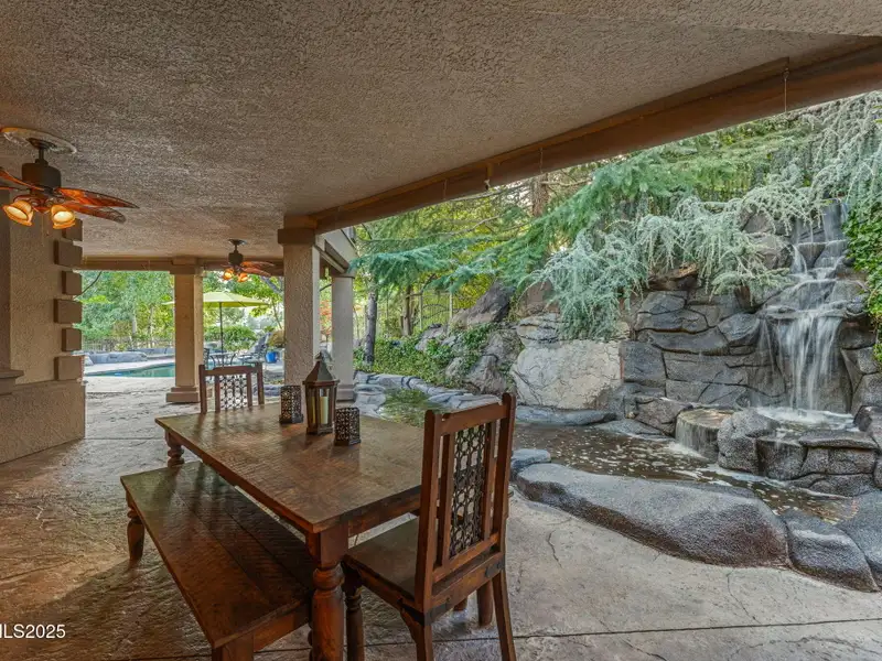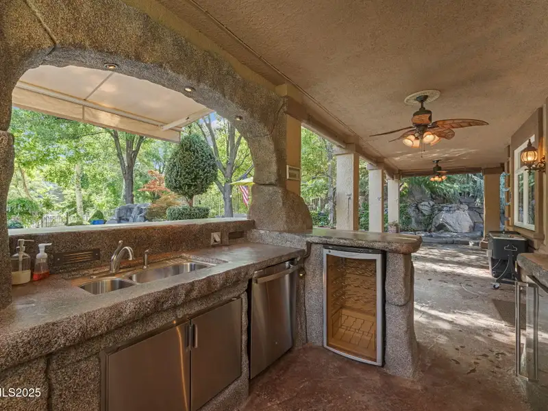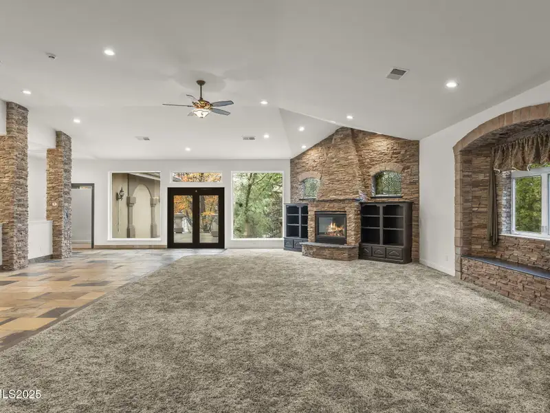 Experience unmatched luxury and tranquility in this spectacular 5,470 sq. ft. lakefront estate, perfectly positioned on the shores of Lake Stanley. Located within one of the area's most coveted gated communities, this home offers breathtaking mountain and water views, and an exquisite blend of elegance and modern comfort. The grounds are truly extraordinary. Surrounded by mature landscaping, a boat dock, a tennis court, and peaceful ponds and creeks that create an unmatched setting rarely found. The backyard is an oasis designed for both relaxation and first-class entertaining. Enjoy an inground pool with a cascading waterfall, a fully equipped outdoor kitchen that's complete with BBQ, refrigerator, wine cabinet, ice maker, dishwasher, and instant hot water. There are multiple inviting spaces for gatherings near the tranquil pond, soothing waterfall, fire pit, and lush foliage that provides the ultimate retreat. The home sits adjacent to the community common area and directly faces the lake, enhancing both the natural beauty and the sense of openness. This estate has been thoughtfully and extensively remodeled with premium materials and superior craftsmanship throughout. The home features 4 spacious bedrooms, each with its own ensuite bath, plus an elegant half bath for guests. The primary suite is a sanctuary, complete with a cozy fireplace, dual closets, a walk-in shower, and a jetted tub for spa-like relaxation. Designed for both everyday living and gourmet cooking, the kitchen showcases custom copper sinks, a lighted island with prep sink, built-in oven, microwave, warming drawer, and a professional 6-burner gas range with two additional ovens. The adjacent family room features a gas fireplace and custom iron gates that offer a tasteful way to maintain pet-friendly zones. The grand living room features vaulted ceilings, another gas fireplace, and sweeping views of the mountains which offers an unforgettable setting for entertaining or unwinding. A separate formal dining room, enhanced with stunning stone flooring, adds elegance and warmth. The finished lower level provides additional living and entertaining space, including a large gathering area, two bedrooms, and a laundry room, making it ideal for guests, multigenerational living, or a private retreat. With seven French doors opening to multiple balconies and covered patios, the design seamlessly blends indoor comfort with outdoor beauty, allowing you to take full advantage of the incredible views and serene surroundings. This exceptional estate offers unparalleled beauty and luxury. Let this be your private sanctuary in a setting that truly stands apart!