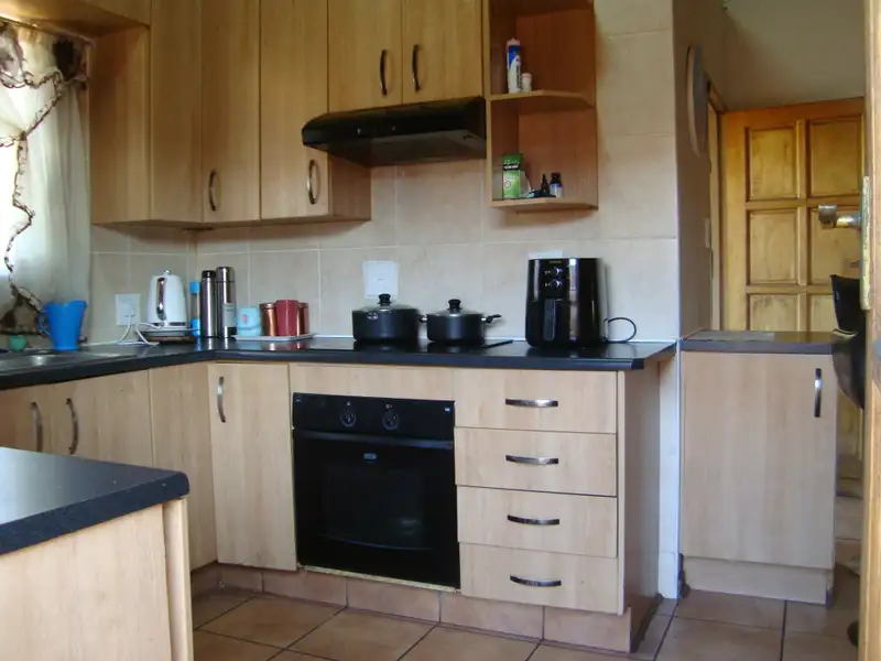 For Sale. Reyno Ridge. Witbank. Situated in a popular area with easy access to the Curro Private School, Ben Fleur Boulevard Centrum, and N4 Highway. This property is ideal for the family who needs an "All in one" cosy place with modern finishes, with enough yard space to raise children although easy to maintain. It offers 3 well sized bedrooms with built-in cupboards, 2 bathrooms: 1 full bathroom (shower, bath, basin and toilet), plus an en-suite with shower, basin and toilet, open-plan lounge and dining that offers access to the outside patio through a sliding door, a kitchen, and a double garage with built-in cupboards and electric doors offering direct access into the house. Extras added to your safety: electric fence, automated gate, burglar bars, plus security gates at all doors. Bonusses: a pre-paid meter and geyser timer. Book your appointment to view.