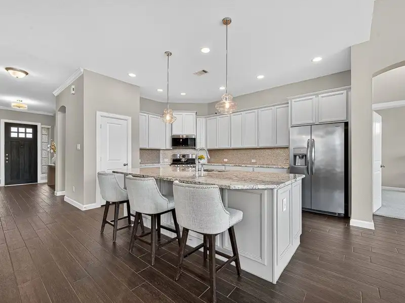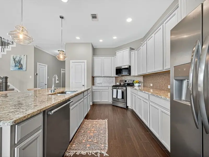 - Gourmet kitchen with custom cabinets