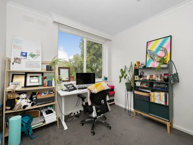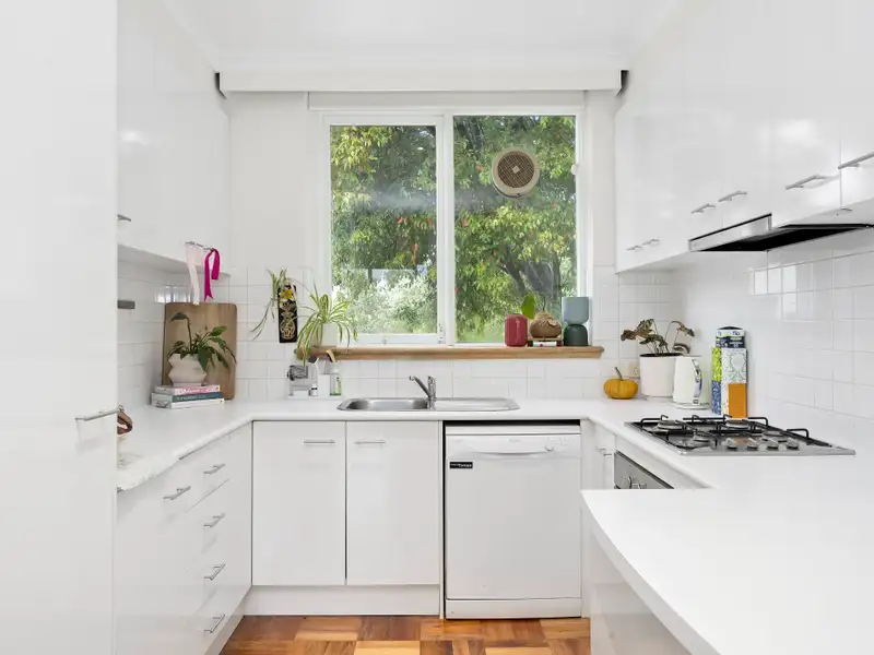 Two generous bedrooms each include built-in robes, while the renovated bathroom incorporates laundry facilities and a separate toilet. The freshly painted home also includes new carpets and window furnishings, and repolished floorboards. There's also a car space on title and the quiet comfort of a solid-brick boutique block surrounded by lush communal gardens.