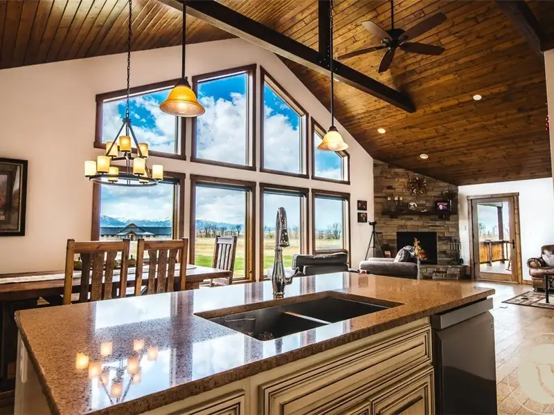 - Mountain views with vaulted ceilings