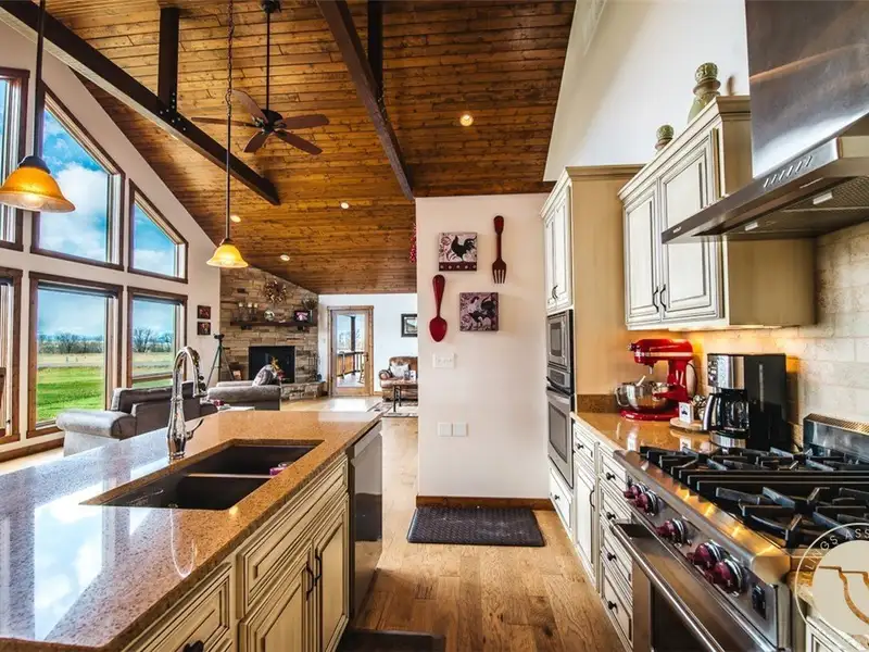 - Large pantry and wood kitchen cabinets