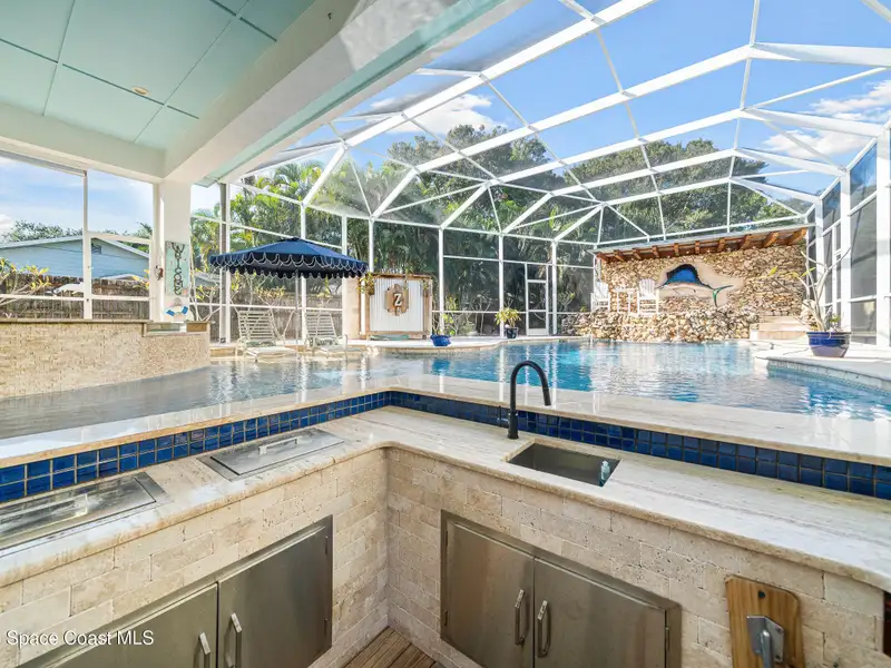 - Heated pool with swim-up bar and waterfall