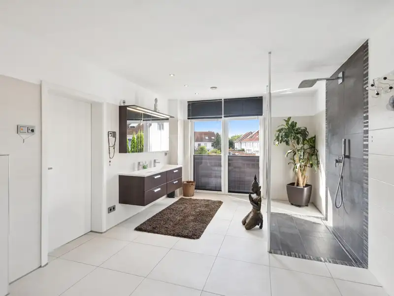 Another highlight awaits you on the top floor, where the spacious living ambience continues. Enjoy the luxury of two of the bedrooms with en-suite bathrooms. The master bathroom in particular offers plenty of space for comfort and relaxation. A generous bathtub is the focus of your attention and promises relaxing moments! The floor-level shower and double washbasin complete the feel-good offer.