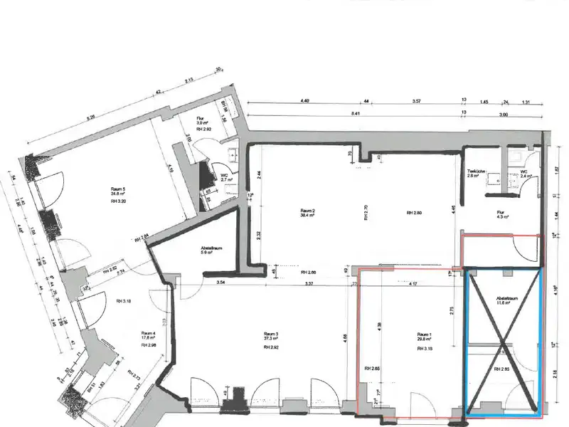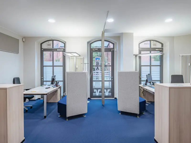 The prime location and the type of premises as well as the diverse design options make this space, which is located in an imposing brick building with a high advertising impact, absolutely interesting! The premises, which were previously used by a bank, meet all the requirements and standards of a modern office under ideal working conditions. The 3.20 meter high rooms and the glass door elements facing the church square give the space a special charm. All necessary media and an individual lighting system are already in place. You can expect a spacious entrance and reception area with an attractive and sound-absorbing counter, an open office space (open-plan) and a large storage room. In addition, there is a sanitary area and a separate pantry kitchen as well as a lounge. The existing cellar rounds off this offer perfectly.