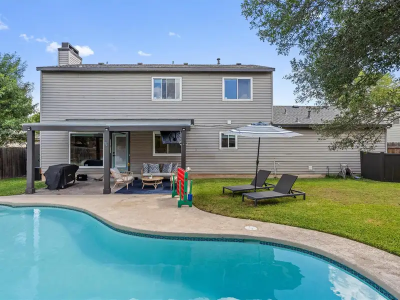 - Backyard pool with covered patio