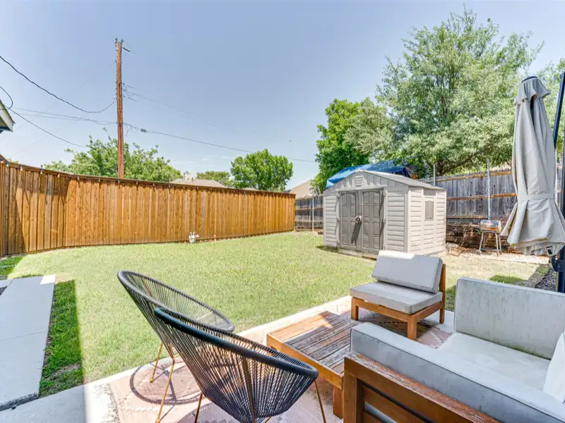 - Inviting backyard with seating and lawn