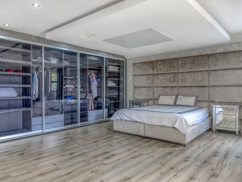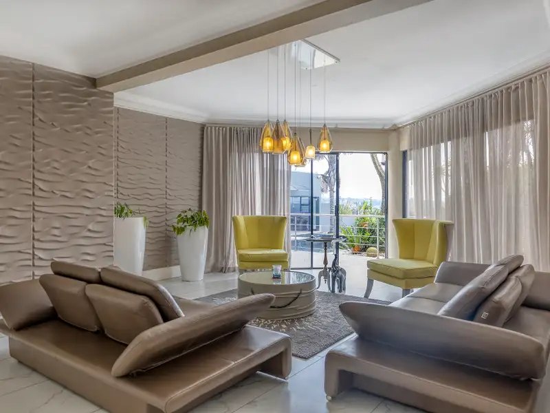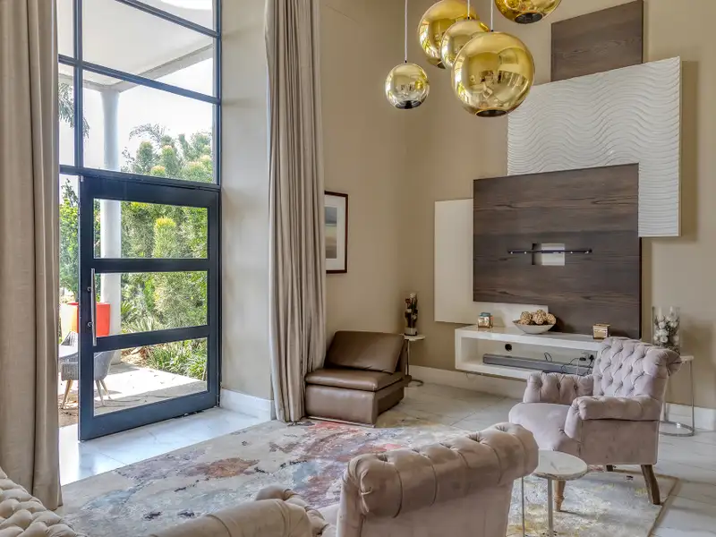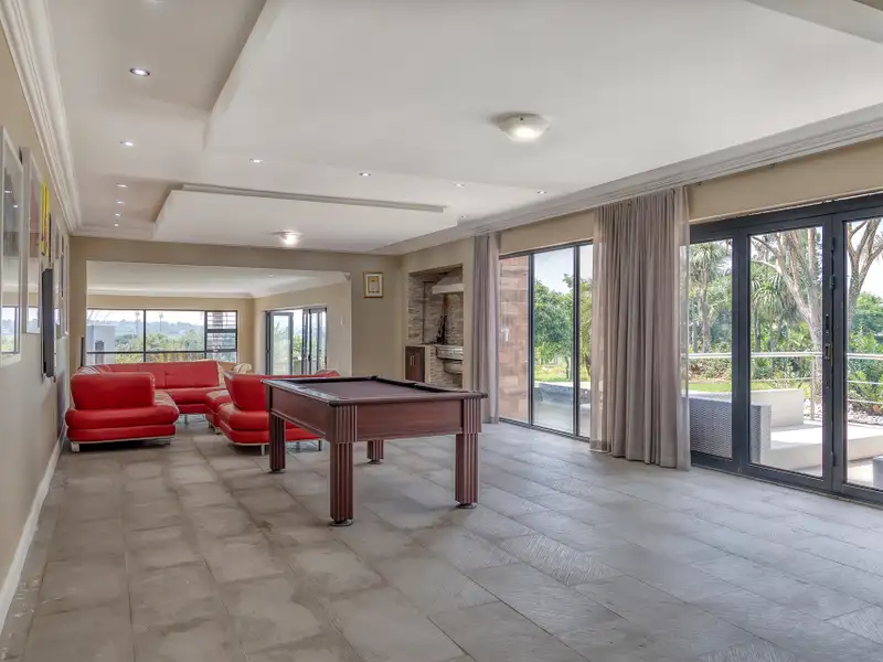 • Stackable doors that open directly onto the sparkling swimming pools, deck, built-in boma, and expansive garden.