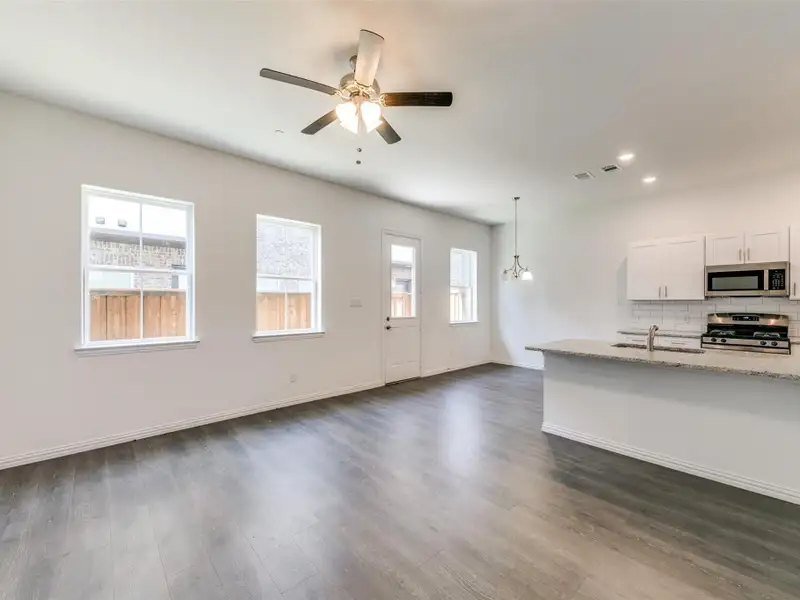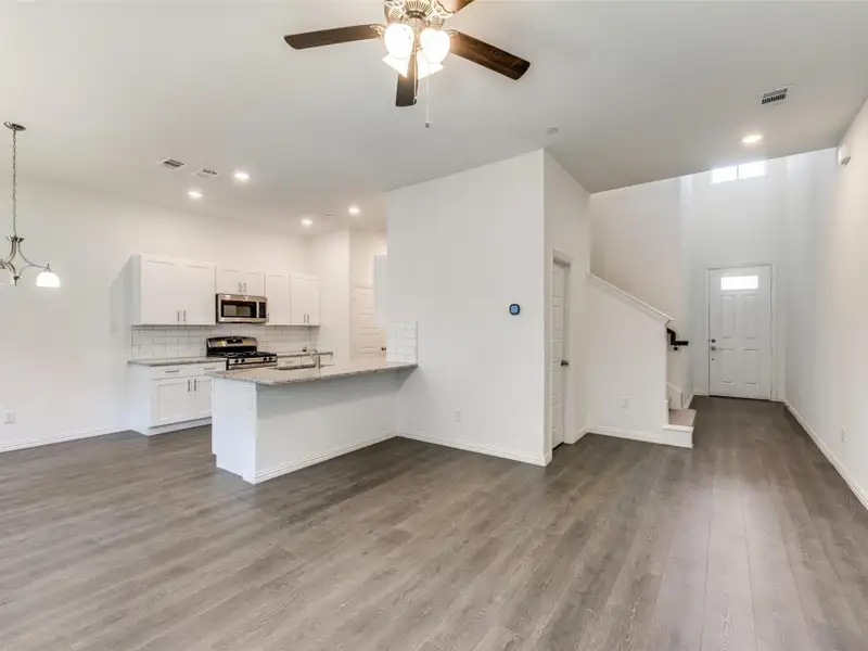- Open floorplan linking living, dining, kitchen