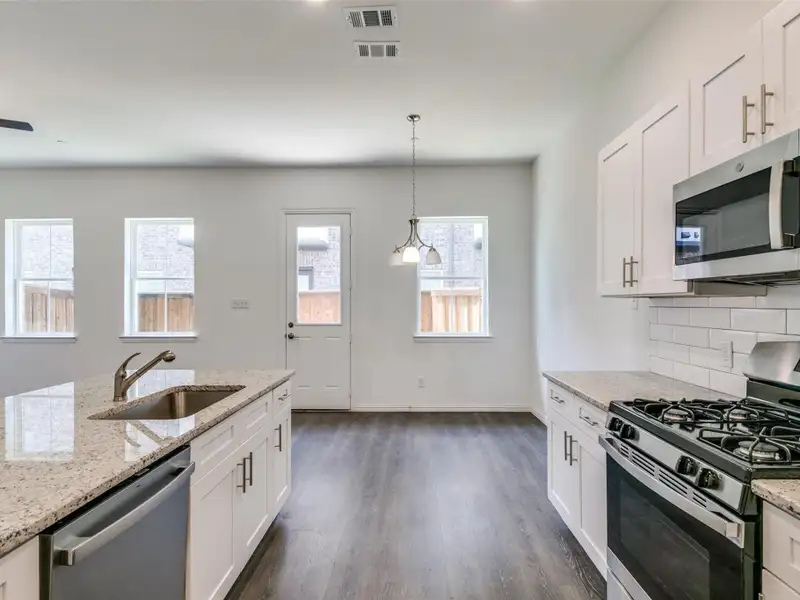 - Kitchen with gas stove, granite counters
