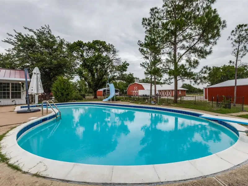 - In-ground pool with slide and patio