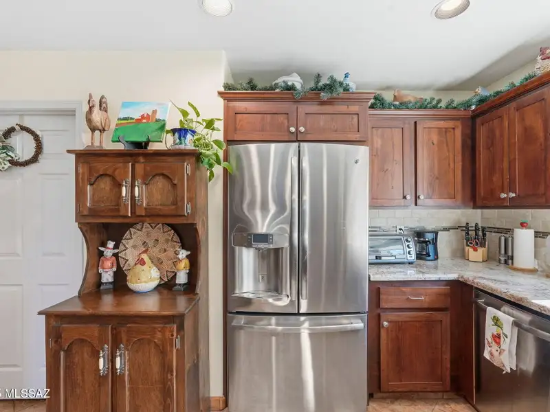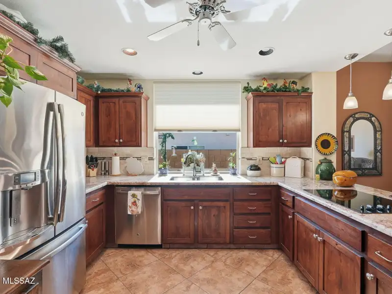 - Kitchen with granite counters and stainless appliances