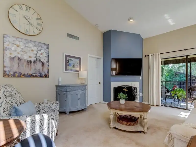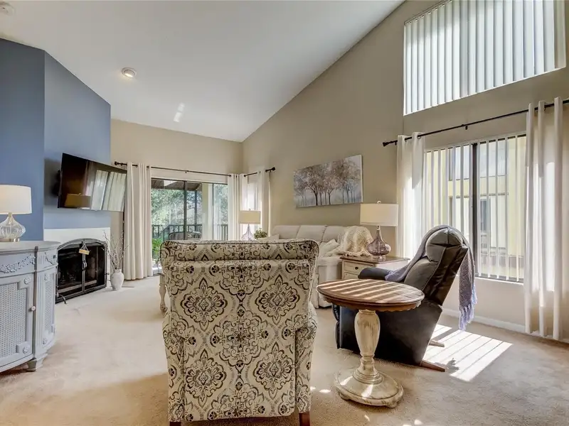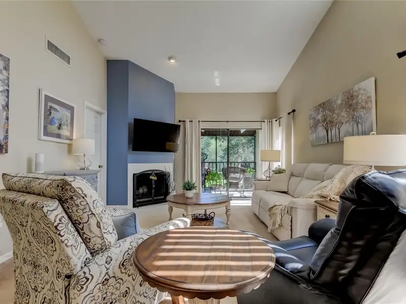 - Open living space with fireplace