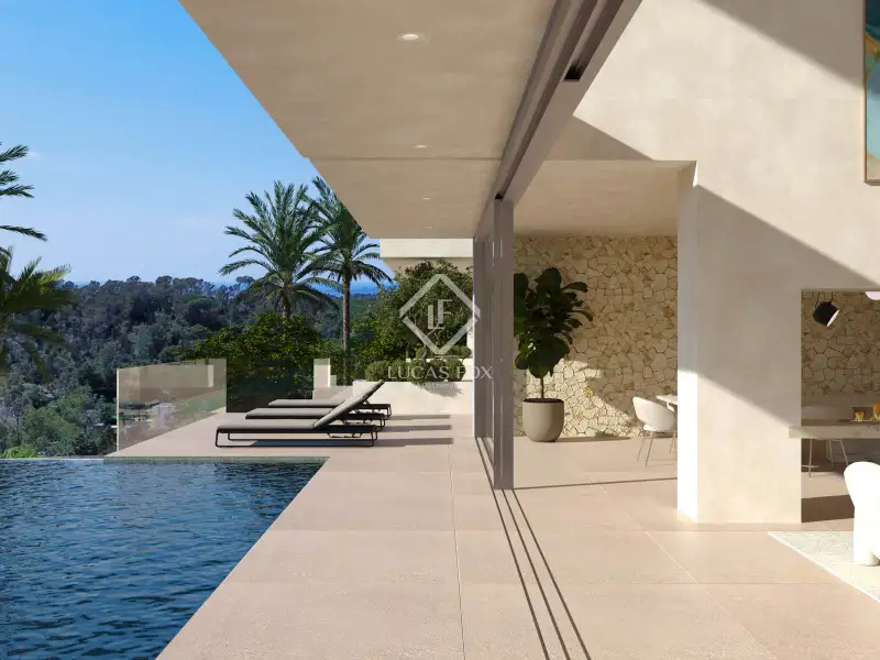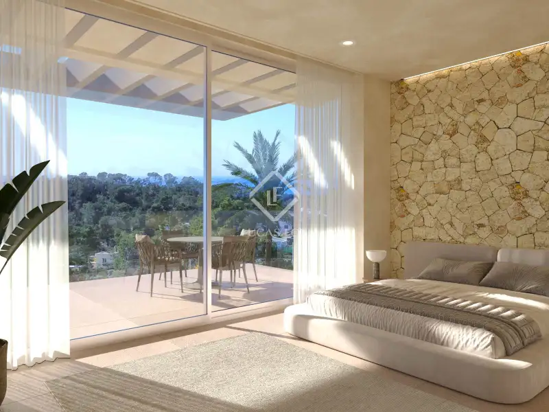 This plot offers an exceptional opportunity to create your dream home in one of Ibiza’s most desirable locations. With the building license soon in place, construction can begin this year (2025), allowing you to bring this vision of coastal luxury living to life. Located just 27 minutes from the airport, this prime piece of land offers panoramic sea views, lush greenery, and an exceptional opportunity to build a high-end property with top-tier amenities, including an outdoor pool, gym, spa, and private padel tennis court. - Location: 6 minutes from San Antonio Ferry, 8 minutes from Cala Salada, and 27 minutes from Ibiza airport - Building Licence: Approved in a few months and ready for immediate construction (licence requested in February 2024, expected to be valid by Q3 2025) - Plot Size: 2,425.71 m² - Planned Structure: Three-story luxury villa with a total living area of 882.73 m²