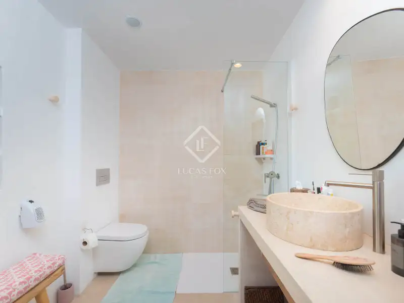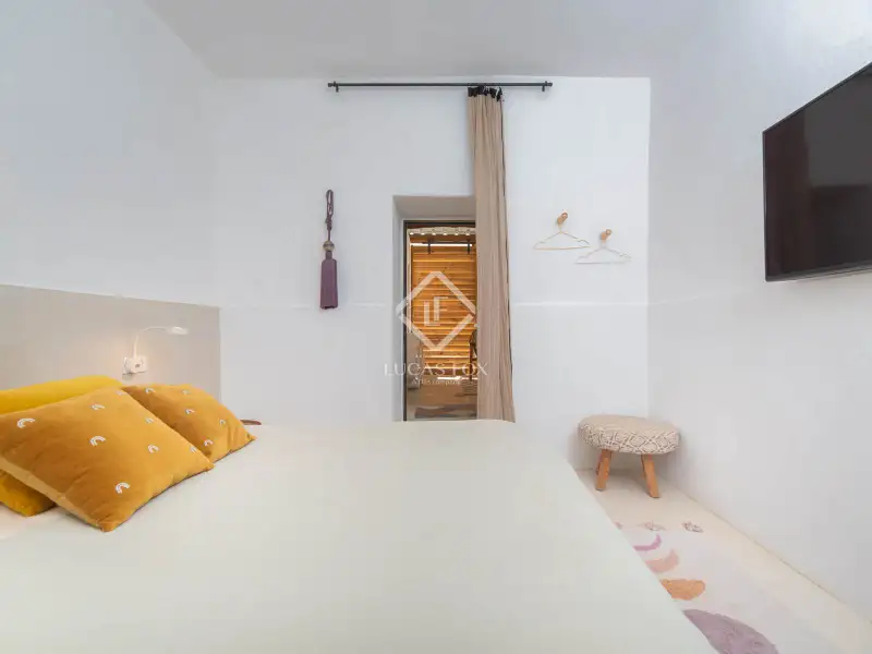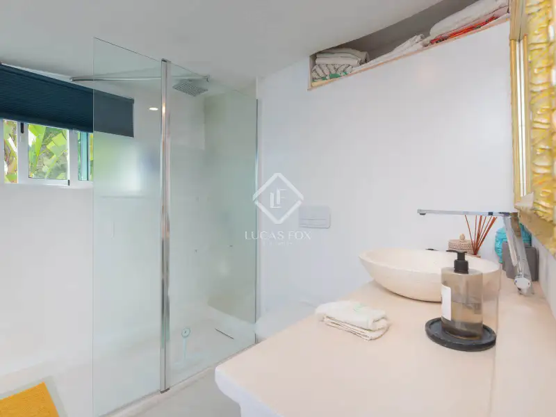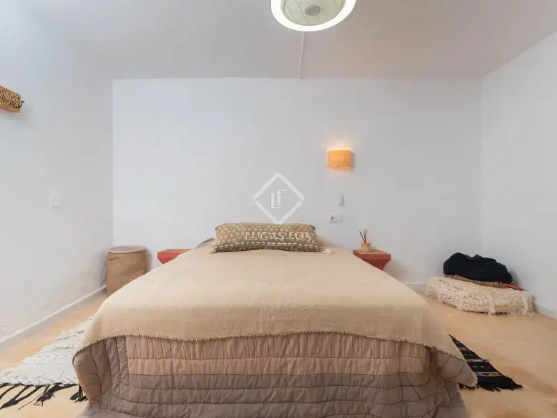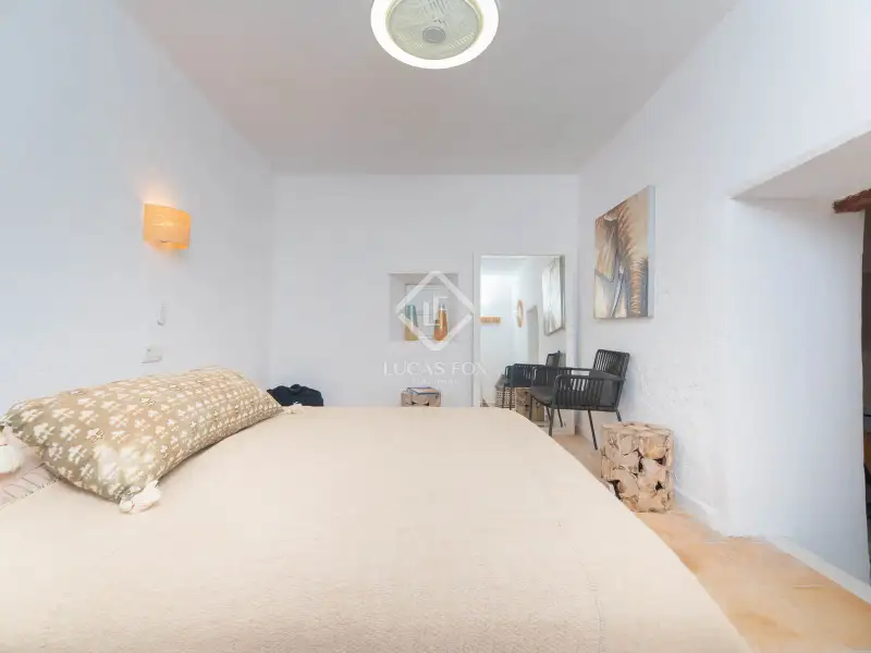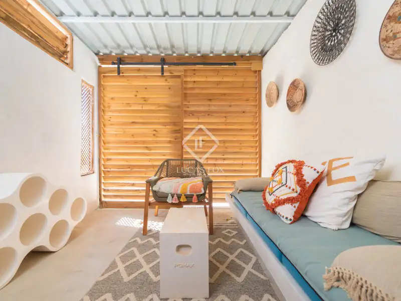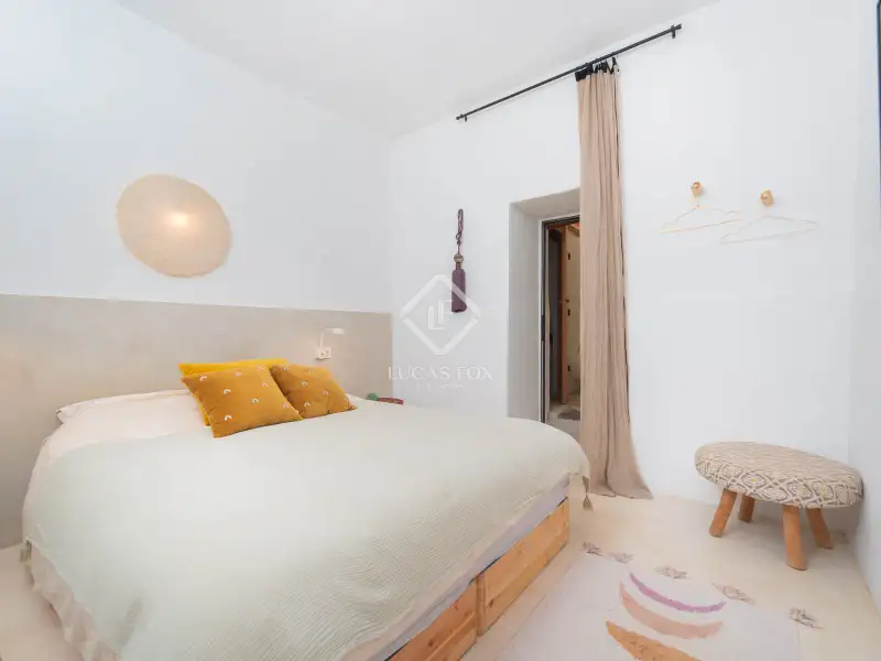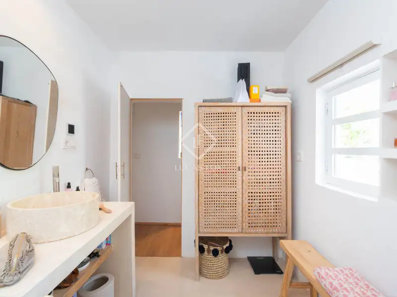 Upon arrival, guests are welcomed by a charming outdoor terrace with a bar, offering stunning sea views and a warm, inviting atmosphere. The cosy living room, infused with authentic Ibizan style, opens onto a sun-drenched terrace, the ideal spot to relax and unwind.