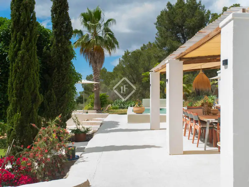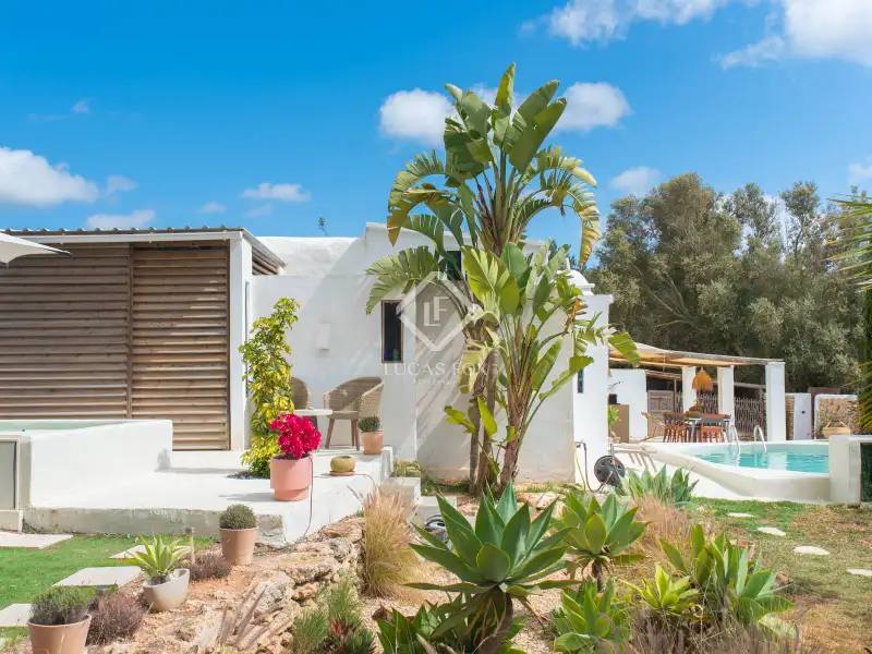 Tucked away on a vast 30,000 m² plot, this stunning finca, originally built in 1850 and carefully renovated, perfectly captures the timeless spirit of Ibiza.