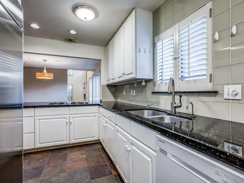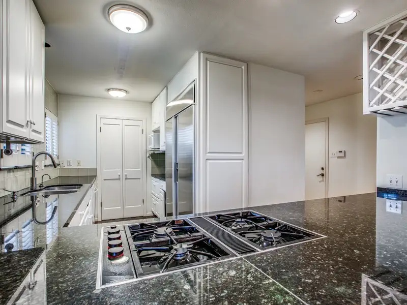 - Granite countertops with gas cooktop