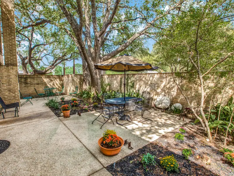 - Large walled courtyard with mature oak trees