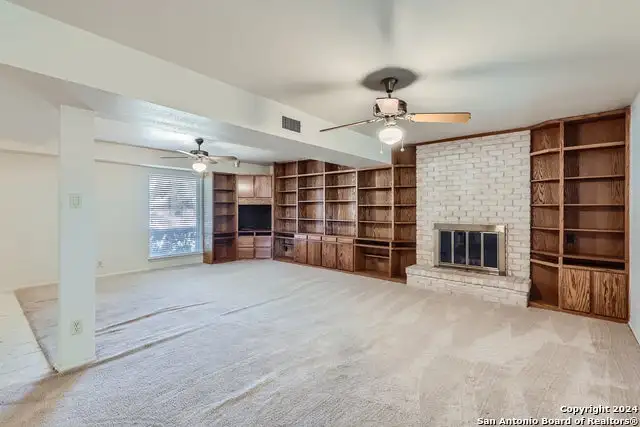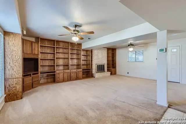 - Wood-burning fireplace with built-ins