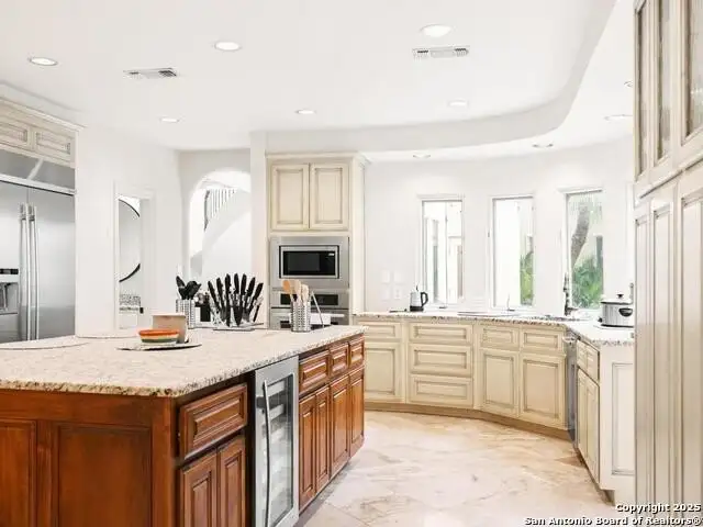 - Built-in refrigerator and stainless appliances