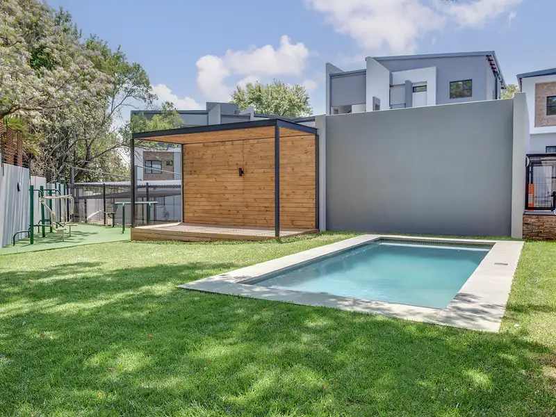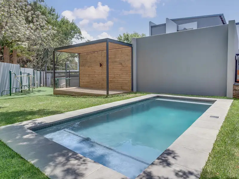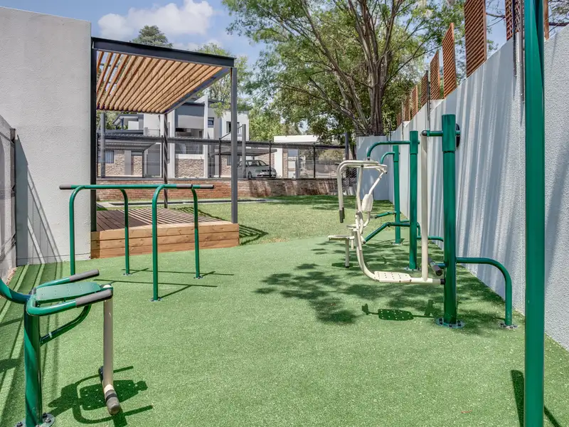 - Outdoor gym, pool, and pergola area