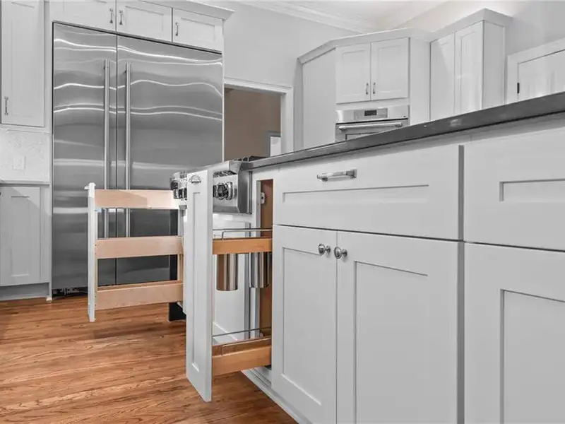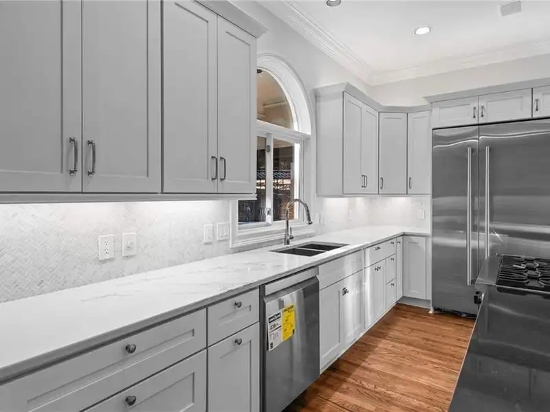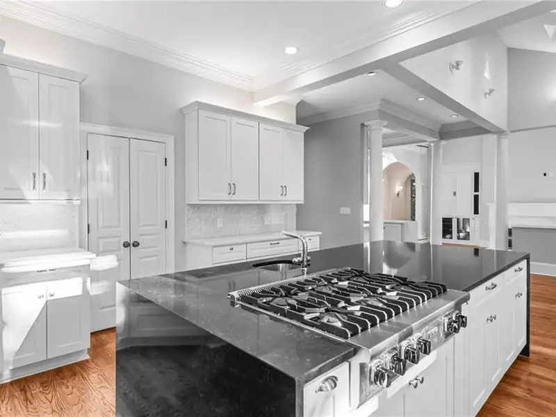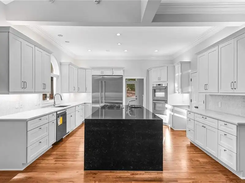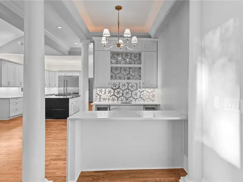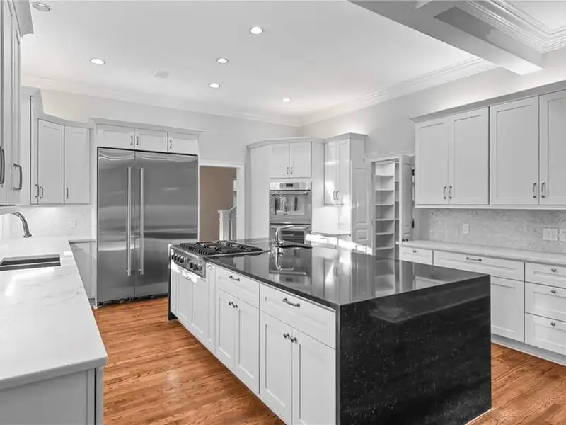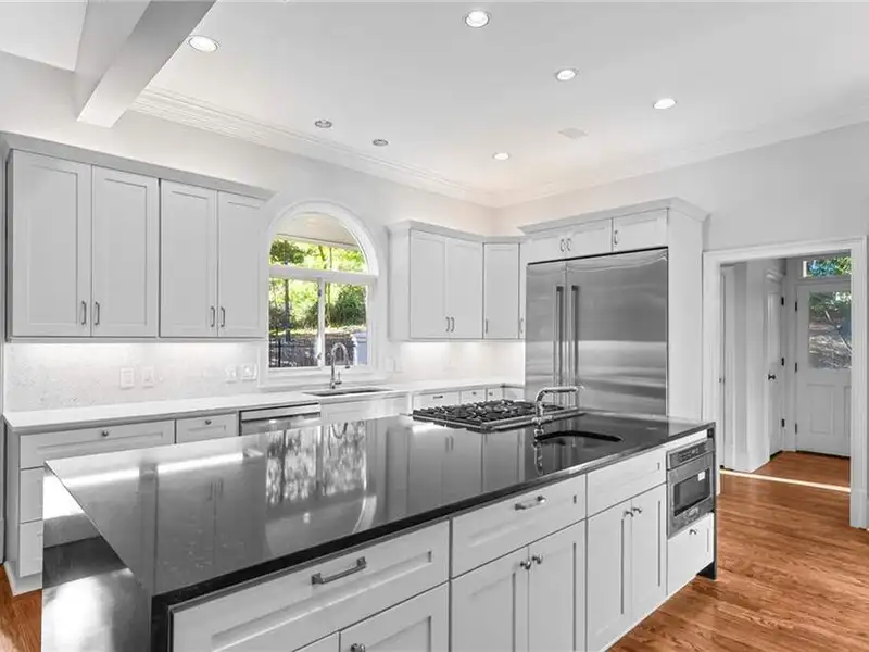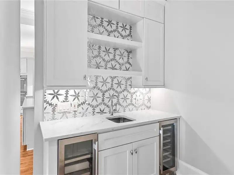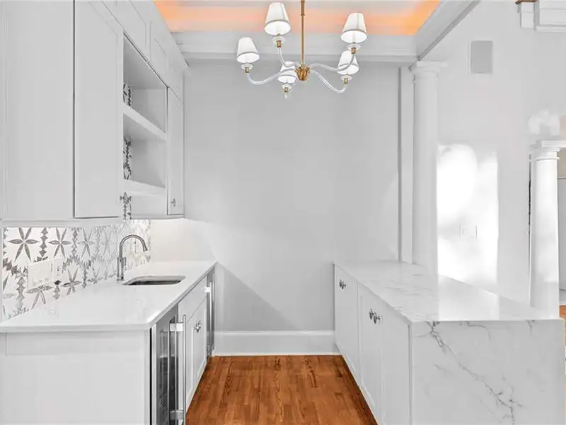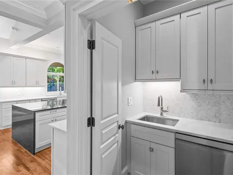 Located in the desirable suburb of Sandy Springs (ITP), this exceptional property has one of the largest lots in the exclusive development of Tiller Walk. Custom designed and built by architect Killy Kunomoto, this European inspired home has many extraordinary features. As you enter through the custom designed leaded glass doors and transom created by George Goodyear into the dramatic grand foyer with soaring ceilings, twin coat closets, beautiful trim and chandelier. Formal living room to your left and spacious dining room with hidden storage, tray ceiling and intimate cove lighting to your right. Straight through the foyer is the two-story great room with a custom fireplace flanked by built-in cabinetry and a spectacular view of the beautiful, heated pool and spa. Brand new kitchen includes new soft close cabinetry, backsplash tile, stone countertops and new stainless steel appliances Viking 6-burner cooktop, Thermador double wall ovens, Jenn-Air Frig. Butler's pantry & large walk-in pantry. Spacious breakfast room has entertainment bar with custom cabinetry and two beverage chillers. Overlooks tongue & grooved screened porch. Full Pool bath and separate laundry room for added convenience on this level. Private office/library has fireplace and overlooks the stone patio, spa and free-form pool. Take one of the two staircases up to the bedroom level where you will find the primary suite with updated bath and another custom designed leaded glass window over the soaking tub, double split vanities, two custom built out closets, tray ceiling with special lighting. Split from the rest, you will find three oversized ensuite bedrooms with updated baths and built out walk-in closets. Take the open stairway down to the terrace level for the family room and third fireplace, second bar area, game room, exercise room and 700+ bottle wine cellar. Lots of unfinished storage space Wrought Iron fencing around pool - but lot is much larger than the fenced area. This is a must-see!