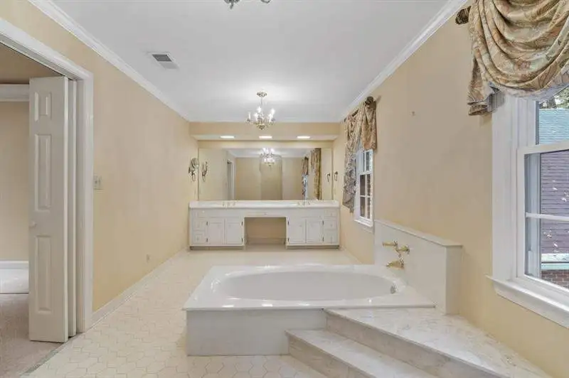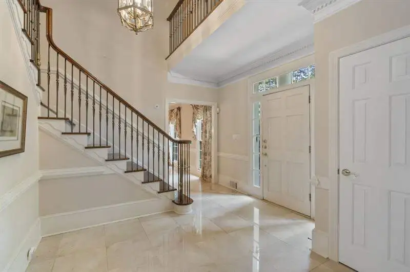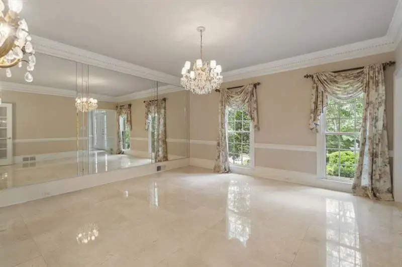 This elegant gated estate rests on 2.23 manicured acres in the heart of Sandy Springs, offering exceptional privacy, architectural sophistication, and an abundance of living space both inside and out. A long, landscaped driveway leads to a grand brick facade with classic columns. The grand double doors welcome you into a breathtaking two-story foyer featuring polished marble floors and a sweeping staircase. To the left, the formal living room invites conversation with its fireplace and abundant natural light, while across the foyer the formal dining room exudes elegance with marble flooring and a mirrored feature wall. The richly paneled den, accented by coffered ceilings and a fireplace, offers a warm and refined space for quiet reading or intimate gatherings. Nearby, a solarium with floor-to-ceiling windows and an antique fountain opens into an expansive media and entertainment room, complete with built-in cabinetry, a retractable awning, surround sound, and dramatic Palladian-style windows that flood the space with light. The heart of the home lies in the gourmet kitchen, with white custom cabinetry, porcelain tile flooring, stainless steel appliances including a built-in steamer, tile backsplash, and off-white Corian countertops. A spacious breakfast room and adjacent sunroom provide stunning views of the backyard, creating a peaceful setting for daily living. The main level also features a large primary suite with dual oversized closets and a private en suite bath, ideal for guests. Upstairs, the luxurious secondary primary suite is a true retreat, highlighted by a lighted double tray ceiling, spa-inspired bath with dual vanities, a jacuzzi tub, and a custom-designed oversized closet. Additional upstairs bedrooms are generously sized and share well-appointed baths, offering comfort and privacy for family and guests. The finished terrace level expands the home's living space with a versatile layout that includes a home office, a full bath, a wet bar, a game area, and direct access to a covered patio. Just off the terrace level, there's ample space to add a custom pool, allowing seamless indoor-outdoor entertaining. On the opposite side of the storage building, there's room for a tennis court or handball court, adding even more recreational possibilities to the estate. Several levels throughout the home and grounds can comfortably host mixed indoor-outdoor gatherings of over 100 people, making it ideal for entertaining on a grand scale. The grounds are equally impressive, featuring brick paver pathways, manicured lawns, classical statues, multiple fountains, and a built-in gas grill-perfect for al fresco entertaining. The guest house features its own three-car garage, providing private accommodations that include a living space with a kitchen, a full bathroom, and a bedroom. This arrangement increases the total garage capacity to five cars. This one-of-a-kind estate offers timeless craftsmanship, thoughtful updates, and premier amenities in one of Sandy Springs' most sought-after neighborhoods.