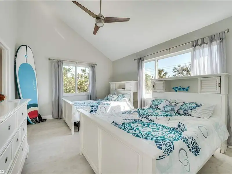 The time to buy on Sanibel is NOW while interest rates are low and prices are at their best in years! With no HOA fees, this is an amazing opportunity to own a very profitable investment property or near beach second home. Booked and already collected rentals thru March 2026, the next owner would receive a minimum of over $36K in rental income at closing! The pinnacle of serene island living this elevated residence is less than 1/2 mile away from the best secluded Gulf beaches (deeded beach access) on the Island! Located on iconic Rabbit road, the pictures tell the visual story of a home that lives big with almost 2,000 square feet of living area. Boasting expansive back yard views of preserve landscapes and tranquil Sanibel river waters visible from nearly every room, this home is a haven of relaxation with meticulous high end upgrades. Step into a culinary paradise with stainless steel appliances, including a 36" Verona range, complemented by newer soft-close cabinets, granite countertops, and thoughtful additions like a pot filler and wet bar sink. The spacious kitchen seamlessly flows into an amazing great room adorned with shiplap walls, vaulted ceilings, and generous picture windows that amplify the sense of space and flood the interiors with natural light. Two guest bedrooms, one featuring a private balcony with more water and preserve views, and another with a convenient jack-and-jill bathroom, offer comfortable coastal living. Ascend to the second-floor primary suite, boasting its own private balcony overlooking the lush preserve and water, with a luxurious master bathroom complete with a walk-in closet. Take advantage of private beach entrances at the end of Rabbit Road and/or a convenient bike path right behind the property on the protected preserve. Additional features include a two-car garage with ample storage space beneath the home, a low-maintenance backyard brimming with potential, and recent upgrades including a 2023 metal roof, 2024 PGT impact-resistant windows and sliders, 2024 Hardie board siding, and a newer HVAC system. Offered turnkey means what you see is what you get!. Very competitive and transferable windstorm and flood insurance (only $900/year!) are available. Sanibel Island is THE shelling capital of the world, and consistently is recognized throughout the globe as one of the best family vacation destinations.