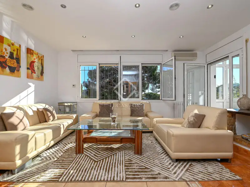 Lucas Fox presents Villa Moli, a beautiful villa located in Roca de Malvet on a 735 m² plot and with a constructed area of 237 m². The house is divided into two floors. A staircase leads to the main floor which has a fully equipped gas kitchen, a spacious living room with fireplace, three double bedrooms, a single bedroom and a full bathroom . This floor benefits from plenty of natural light, as it faces south. From the living room, there are stairs to access the ground floor. On the ground floor there is another large living-dining room perfect for large family gatherings and a double bedroom with its bathroom with shower. From the living room on this floor, there is access to the garage, which is quite spacious and has space for washing machines and dryers. From the ground floor, there is access to the garden and the sunny pool. The exterior area has a covered terrace, a barbecue area and some trees for shade in summer; all with beautiful mountain views. The house has double-glazed windows, automatic blinds, alarm, fiber optics, gas radiator heating, air conditioning and speakers integrated into the ceiling. Please do not hesitate to contact us for more information and to arrange a visit.