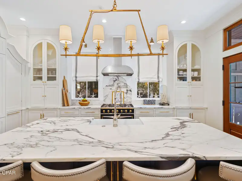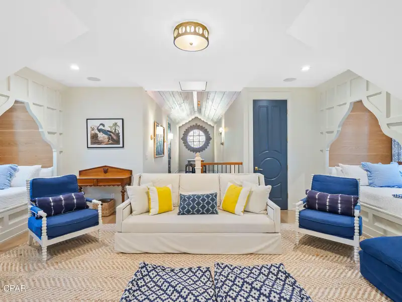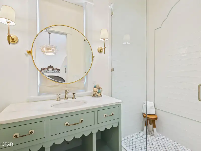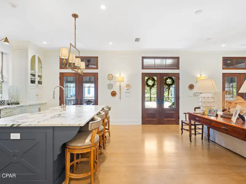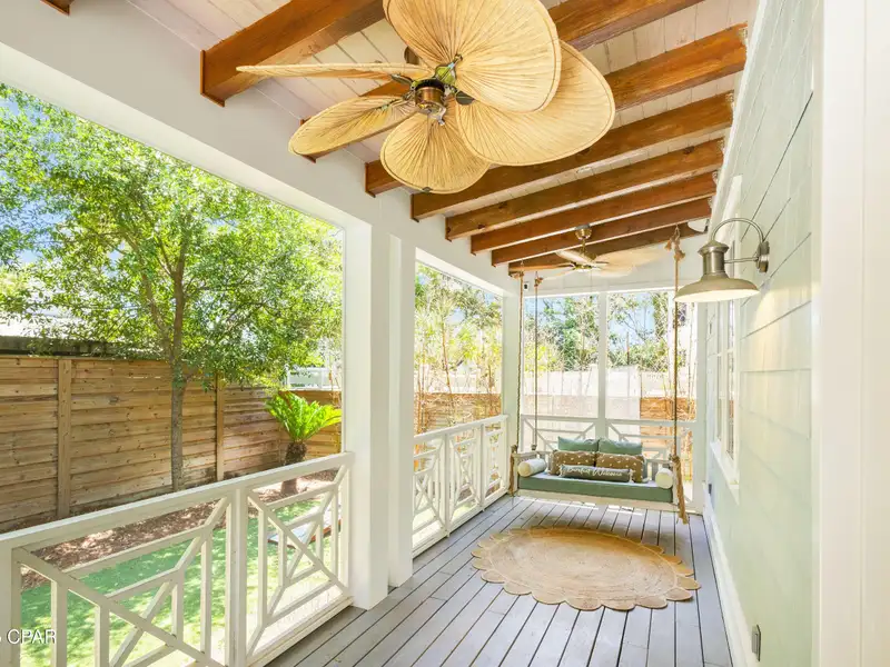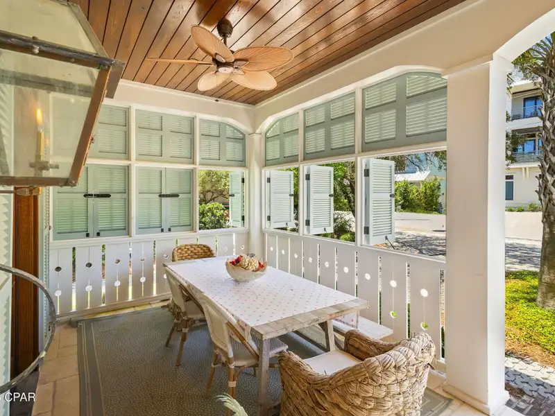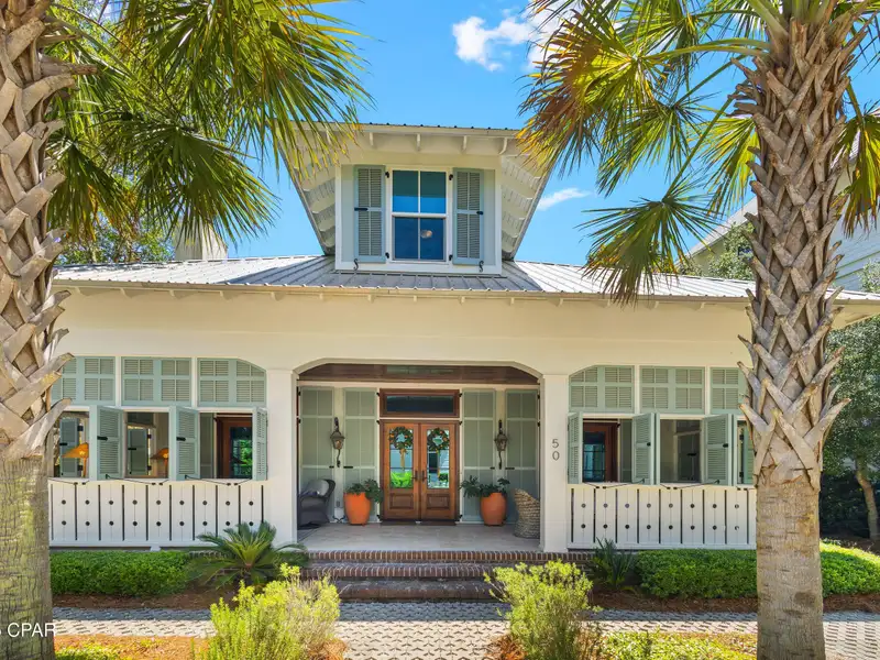 Welcome to 50 Camellia Street - a home where Southern charm meets coastal living in the heart of Old Seagrove Beach, just a bike ride from the energy of Seaside and WaterColor and just steps to the serenity of the Gulf. This property is a custom-crafted Southern Living plan, built by renowned 30A builder Mark Bakane. This refined coastal retreat seamlessly blends notes of timeless lowcountry architectural features with relaxed beachside elegance. From the moment you arrive, the home's craftsmanship is evident. Inviting expansive front porches, natural wood accents and exterior gas lanterns illuminate the exterior beauty of this home. Step onto the storybook front porch where timeless Southern charm meets laid-back coastal luxury. Framed by classic shutters and natural wood elements this space offers a private, breezy retreat perfect for morning coffee or evening cocktails. Tongue-and-groove ceilings, woven seating, and coastal-inspired lighting set the tone for relaxed gatherings with friends and family. Whether you're dining alfresco at the farmhouse-style table or unwinding beneath the ceiling fan with a good book, this inviting porch feels like an extension of the home's heart - warm, welcoming, and wonderfully serene. Inside, the home opens to a large living space framed by shiplap walls, rich wood flooring, and designer lighting. The gourmet kitchen is a showstopper, outfitted with custom cabinetry, top-tier appliances, marble countertops, and an oversized island made for entertaining. The floor plan offers multiple living areas, generous guest accommodations on the first and second levels, and a private owner's suite that feels like a true sanctuary with spa-inspired finishes. Outdoor living is elevated with generous porches and a tranquil backyard space. The backyard is an entertainer's dream, centered around a resort-style pool that exudes luxury. Framed by elegant stone pavers set in lush green turf, the design strikes a perfect balance between sophistication and coastal charm. Ample space for lounging under the sun surrounds the water, while a pergola-covered seating area invites relaxed gatherings or evening cocktails by the pool. Whether you're hosting summer celebrations or enjoying quiet mornings, this thoughtfully curated outdoor oasis elevates everyday living.