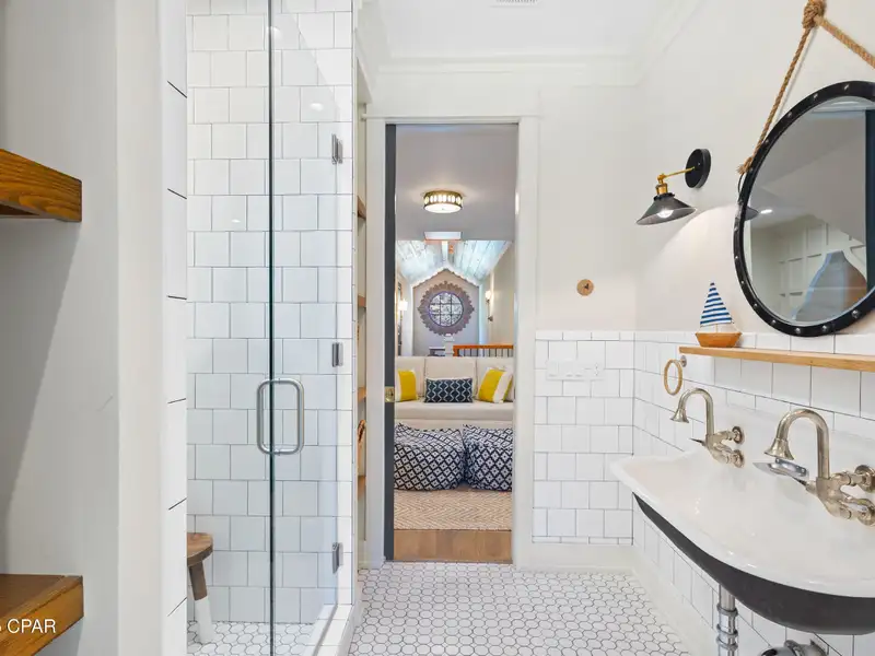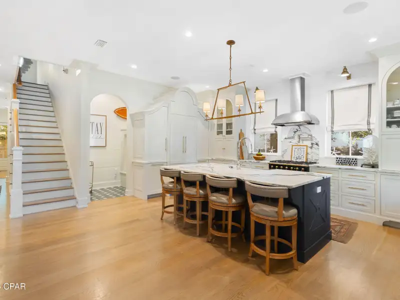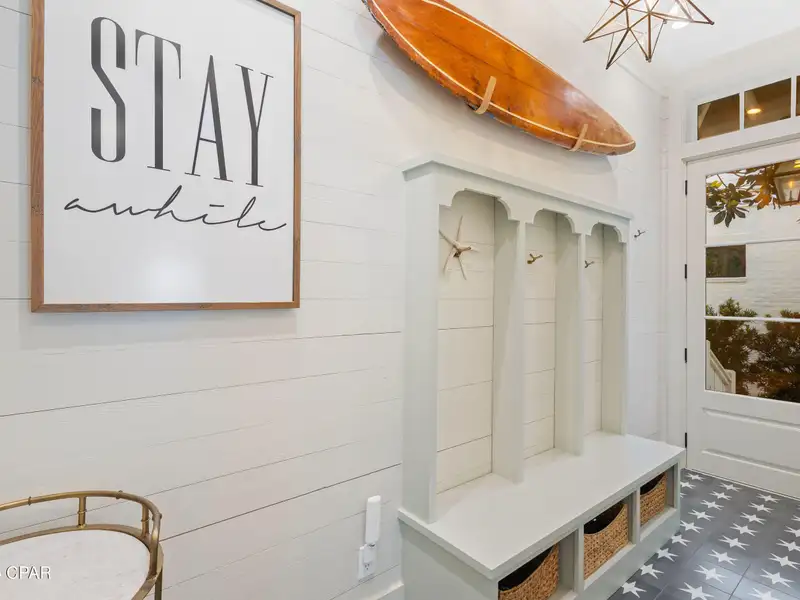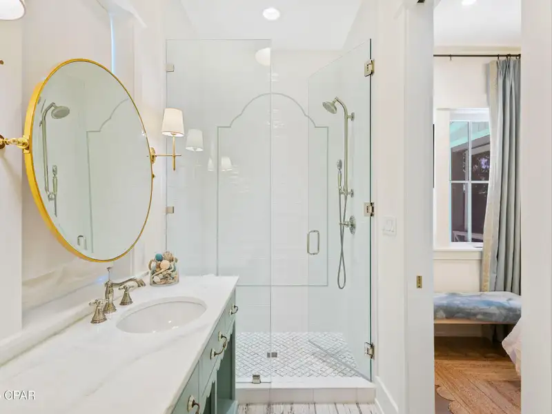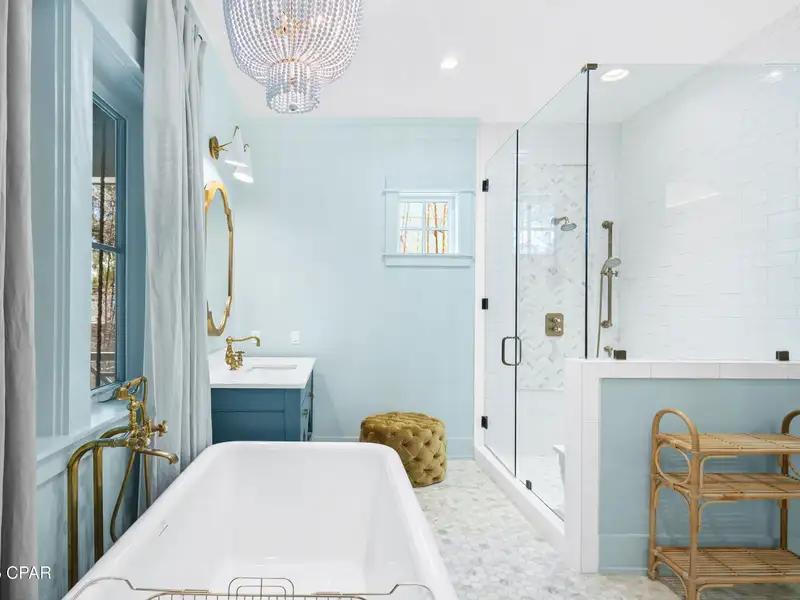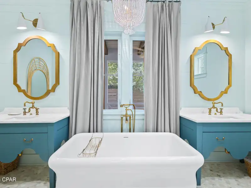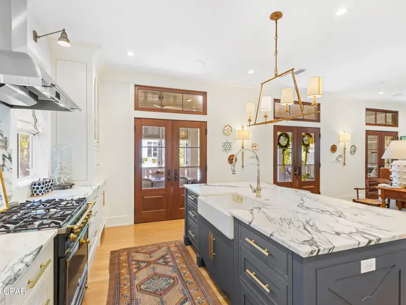 Welcome to 50 Camellia Street - a home where Southern charm meets coastal living in the heart of Old Seagrove Beach, just a bike ride from the energy of Seaside and WaterColor and just steps to the serenity of the Gulf. This property is a custom-crafted Southern Living plan, built by renowned 30A builder Mark Bakane. This refined coastal retreat seamlessly blends notes of timeless lowcountry architectural features with relaxed beachside elegance. From the moment you arrive, the home's craftsmanship is evident. Inviting expansive front porches, natural wood accents and exterior gas lanterns illuminate the exterior beauty of this home. Step onto the storybook front porch where timeless Southern charm meets laid-back coastal luxury. Framed by classic shutters and natural wood elements this space offers a private, breezy retreat perfect for morning coffee or evening cocktails. Tongue-and-groove ceilings, woven seating, and coastal-inspired lighting set the tone for relaxed gatherings with friends and family. Whether you're dining alfresco at the farmhouse-style table or unwinding beneath the ceiling fan with a good book, this inviting porch feels like an extension of the home's heart - warm, welcoming, and wonderfully serene. Inside, the home opens to a large living space framed by shiplap walls, rich wood flooring, and designer lighting. The gourmet kitchen is a showstopper, outfitted with custom cabinetry, top-tier appliances, marble countertops, and an oversized island made for entertaining. The floor plan offers multiple living areas, generous guest accommodations on the first and second levels, and a private owner's suite that feels like a true sanctuary with spa-inspired finishes. Outdoor living is elevated with generous porches and a tranquil backyard space. The backyard is an entertainer's dream, centered around a resort-style pool that exudes luxury. Framed by elegant stone pavers set in lush green turf, the design strikes a perfect balance between sophistication and coastal charm. Ample space for lounging under the sun surrounds the water, while a pergola-covered seating area invites relaxed gatherings or evening cocktails by the pool. Whether you're hosting summer celebrations or enjoying quiet mornings, this thoughtfully curated outdoor oasis elevates everyday living.