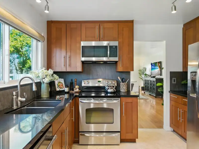 - Remodeled kitchen with stainless steel appliances