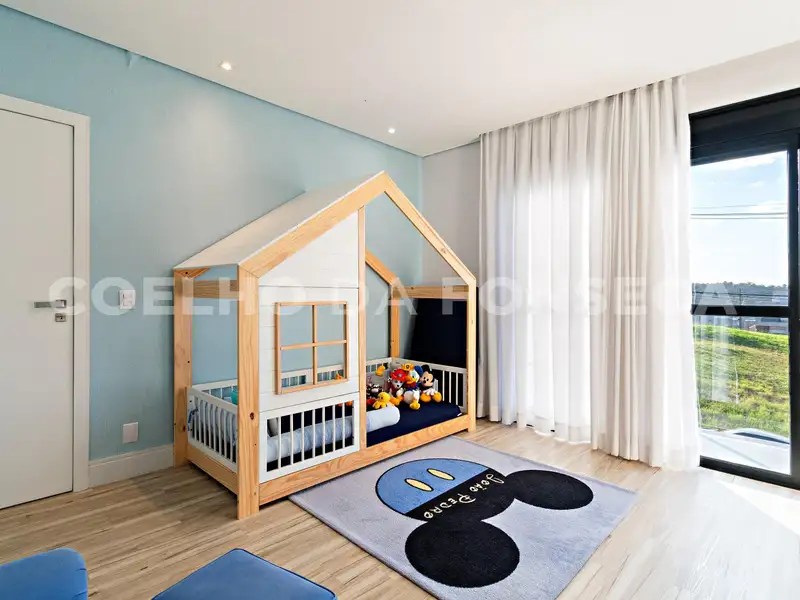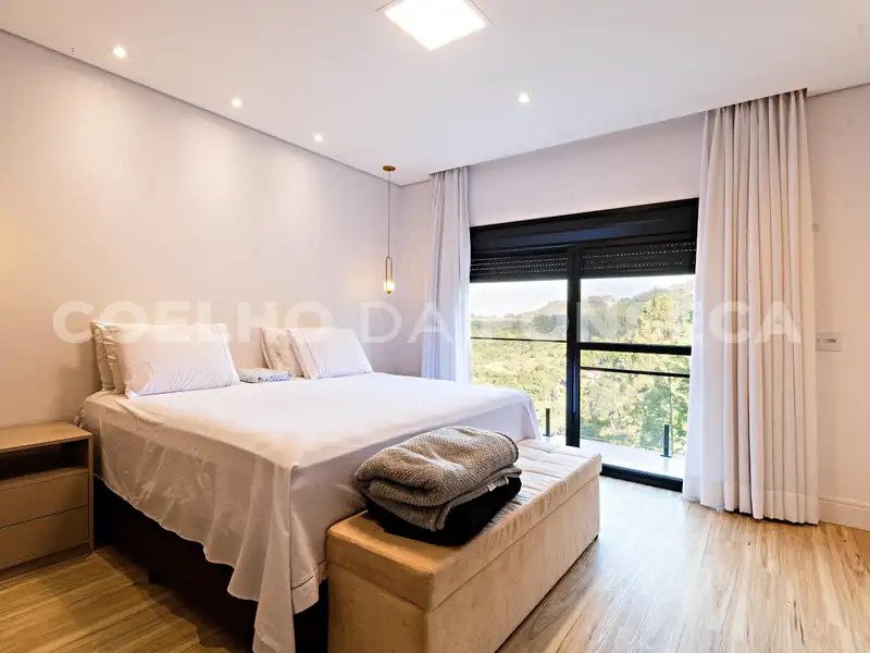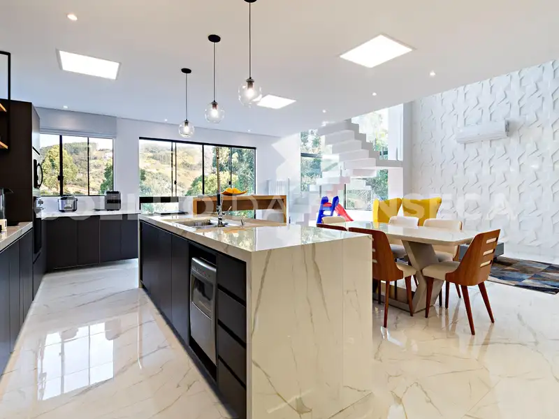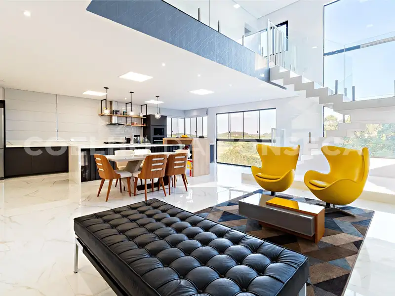 Tenha o privilégio de viver em uma Casa de Alto Padrão, localizada em um Condomínio com excelente custo benefício e infraestrutura completa. Esse imóvel oferece uma vista permanente para a mata preservada, com um lote em declive considerado o melhor do condomínio. A casa é repleta de iluminação natural, graças às amplas janelas que proporcionam um ambiente arejado e acolhedor. Com detalhes de qualidade, como porcelanatos de 1ª linha e pé direito duplo com mais de 6m, a residência exibe elegância e sofisticação. Além disso, conta com todos os ambientes climatizados com ar condicionado e móveis planejados de alta qualidade.