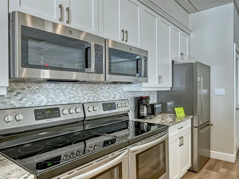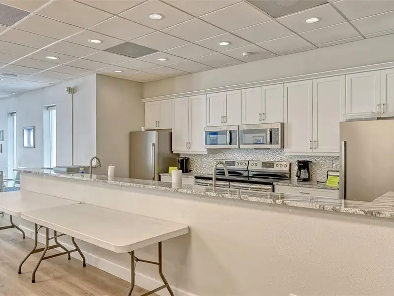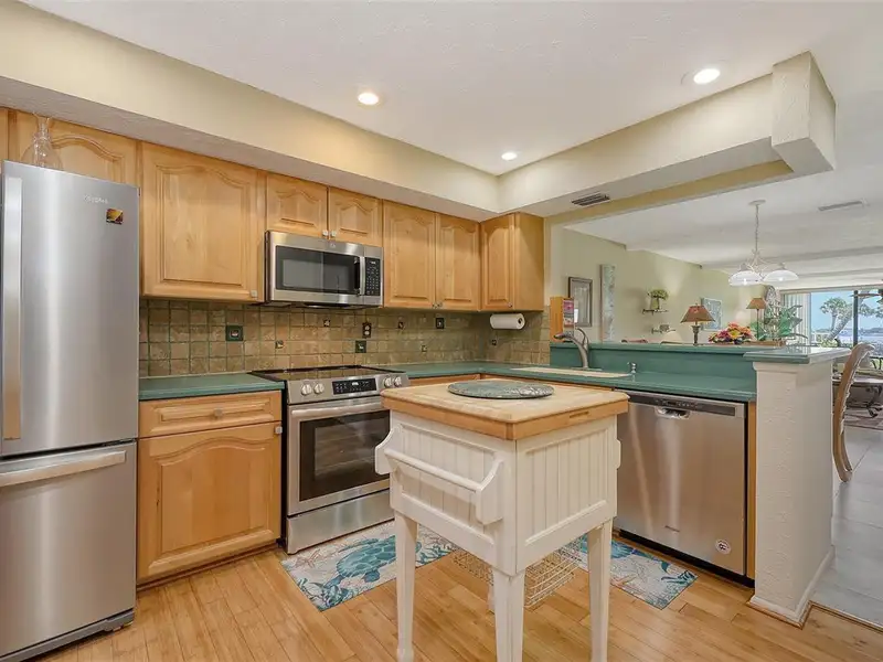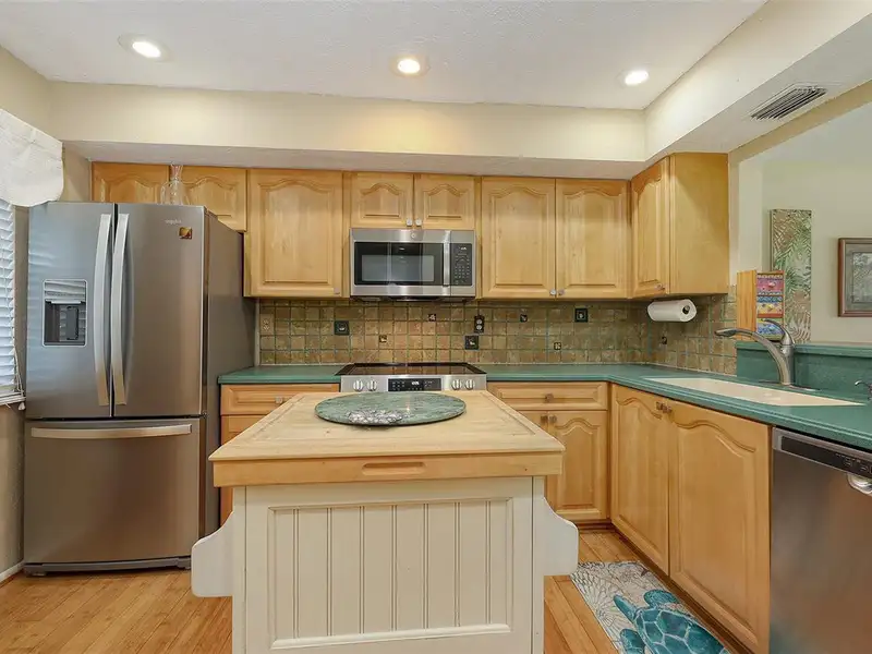 - Kitchen with island and appliances