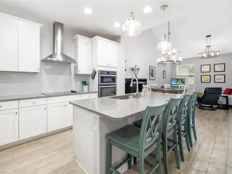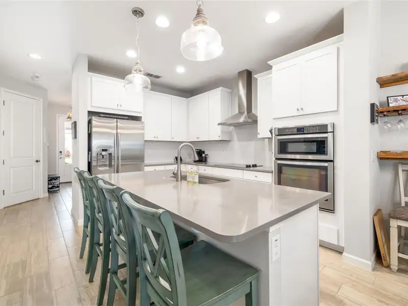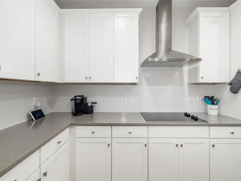- Open kitchen with quartz counters