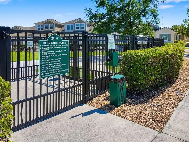 - Gated community with fenced dog park