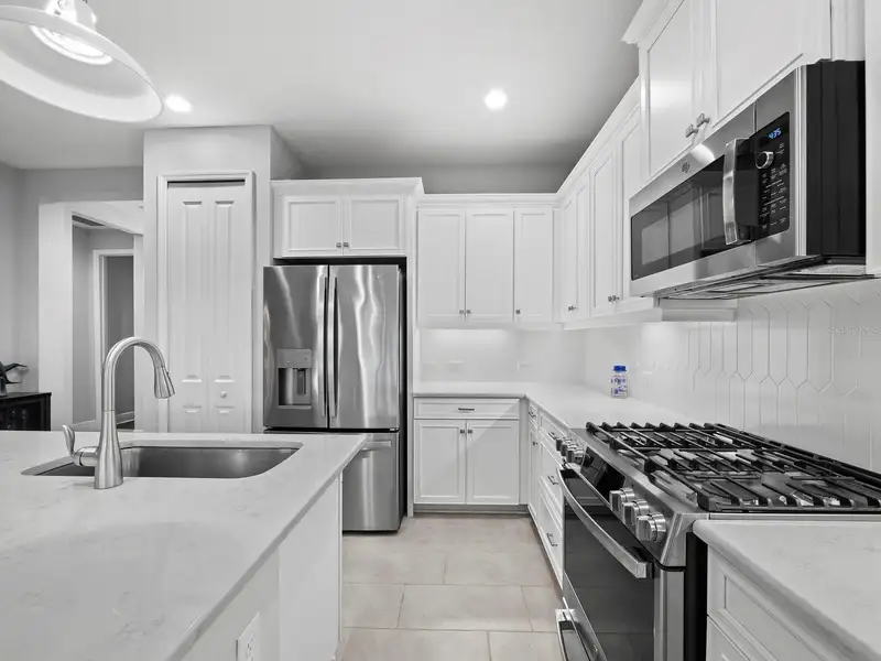 - Cook’s kitchen with gas range and soft-close cabinets