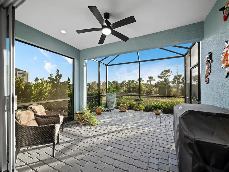 - Extended screened lanai with water view and gas grill line