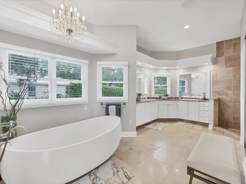 - Primary suite with lake views and spa bath